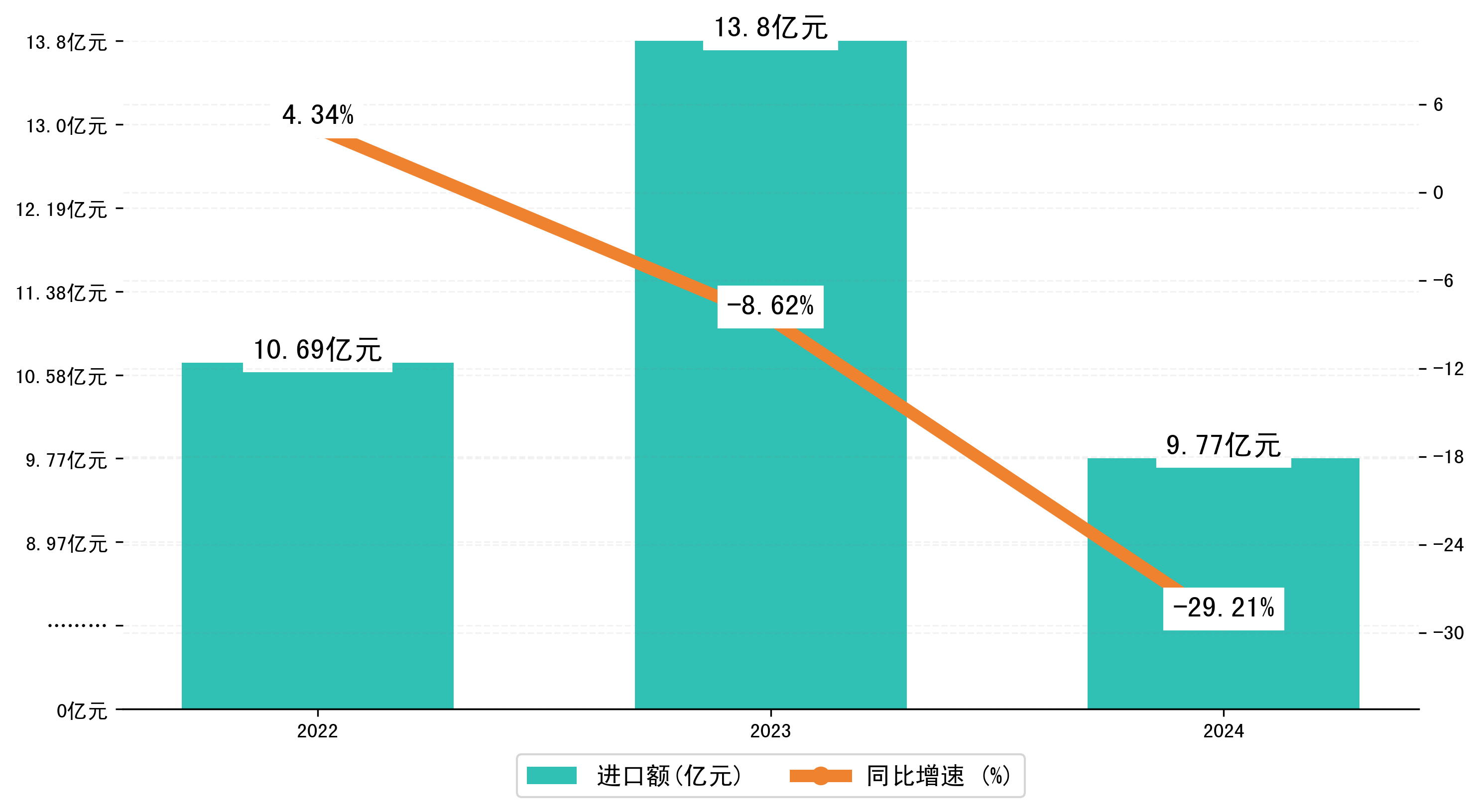 以人民币计,2024年1-8月青海省进口额为9,7714.7507万元,相比上年同期减少了4,0315.3809万元,同比减少了-29.90%。