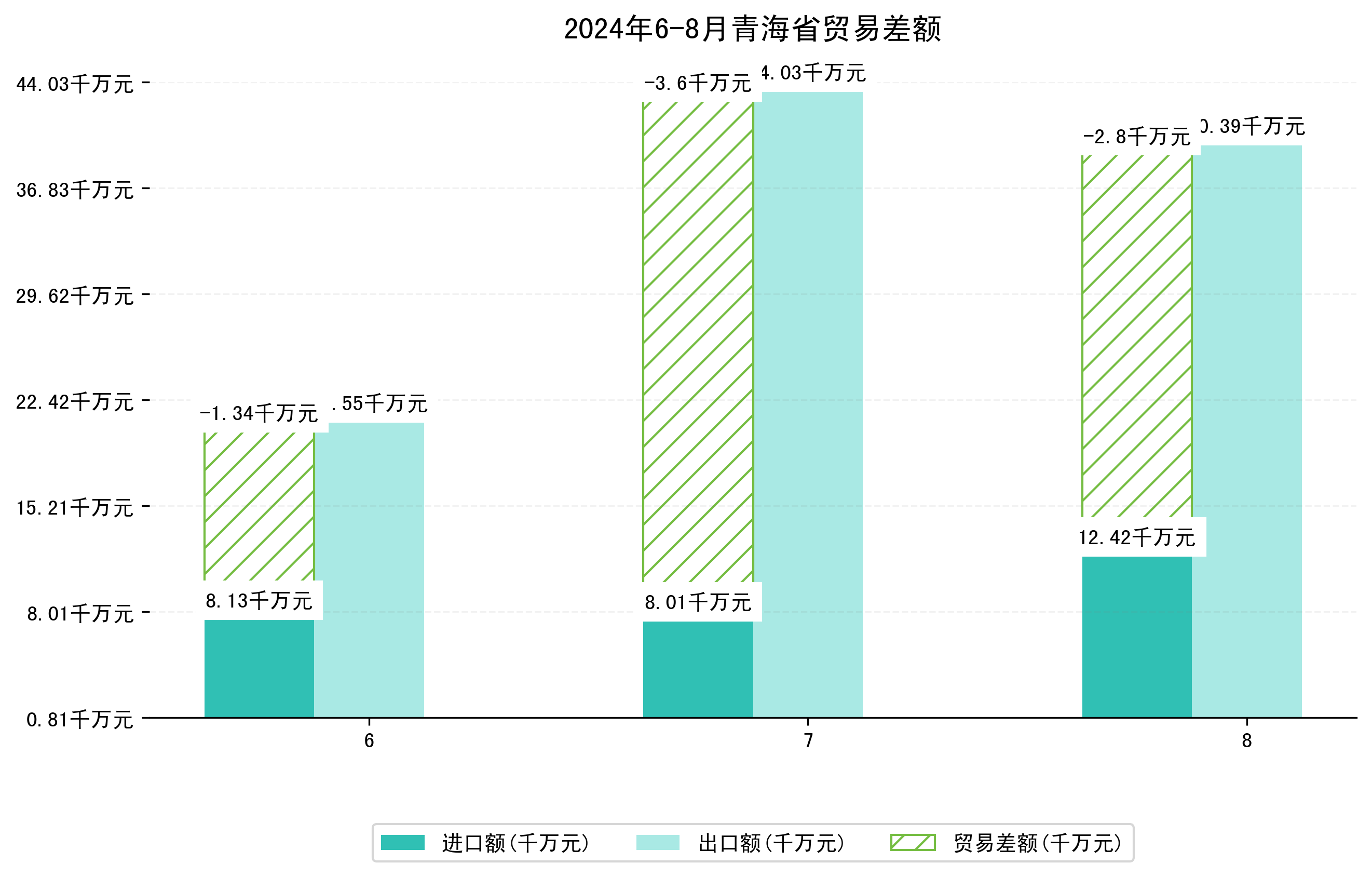 一、2024年8月青海省单月出口总额及进出口差额统计分析