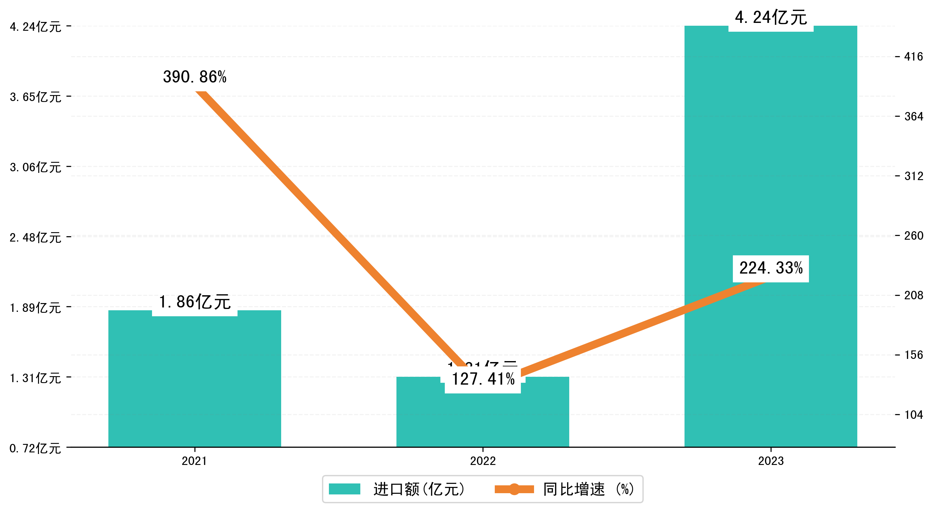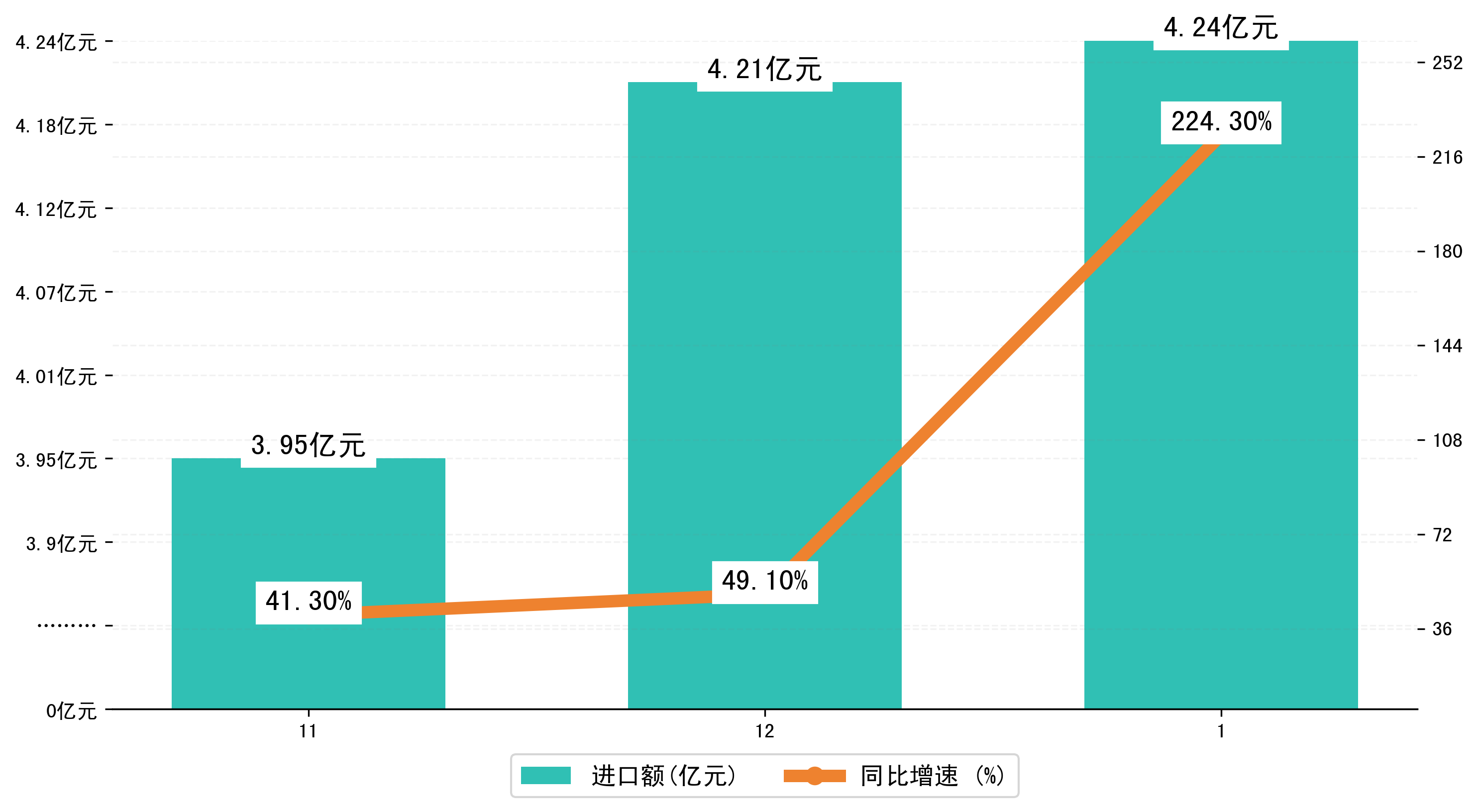 以人民币计,2023年1-1月常德市进口额为4,2361.6982万元,相比上年同期增加了2,9300.4157万元,同比增加了224.30%。