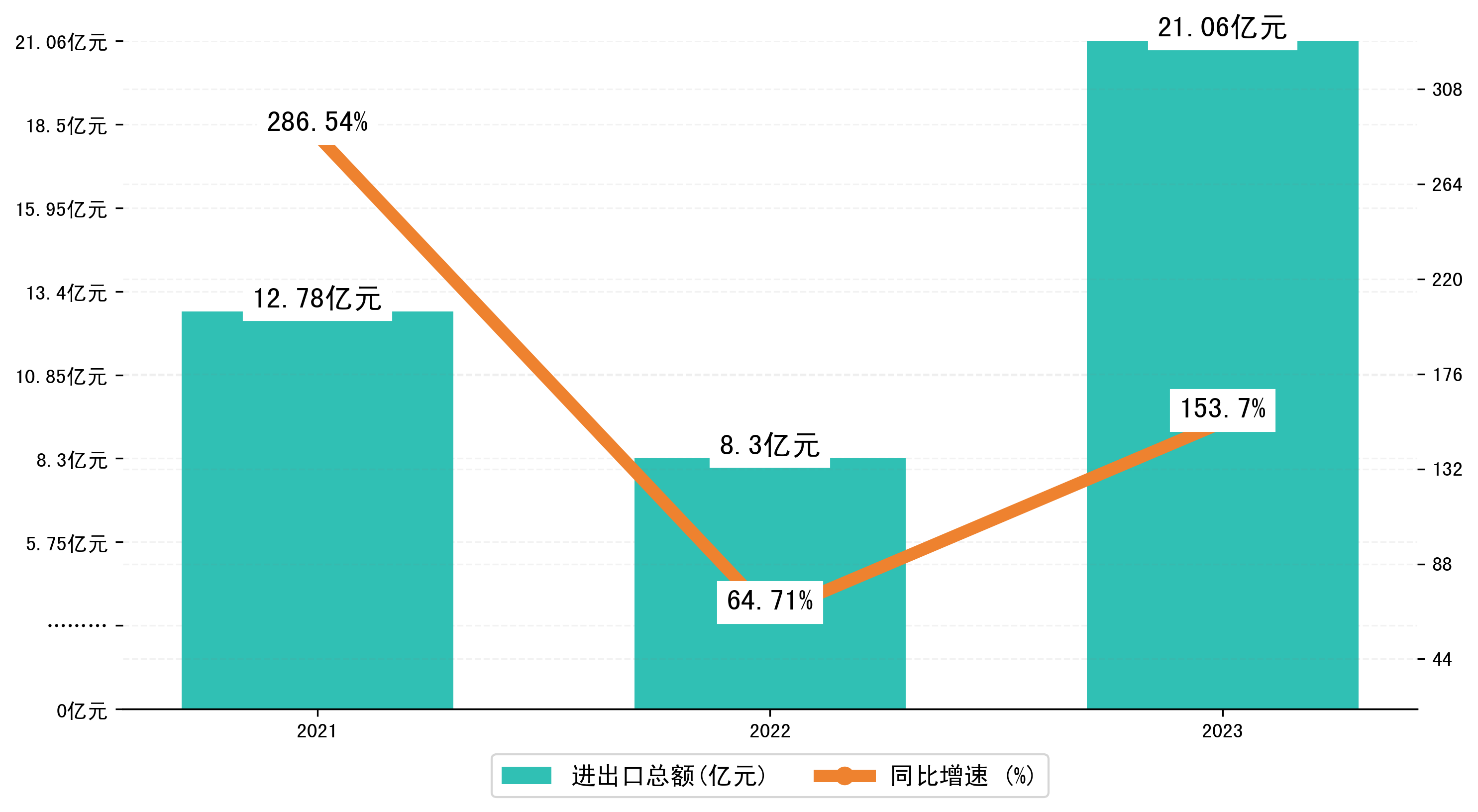 以人民币计,2023年1-1月常德市进出口总额为21,0557.2284万元,相比上年同期增加了12,7562.4726万元,同比增加了156.40%。
