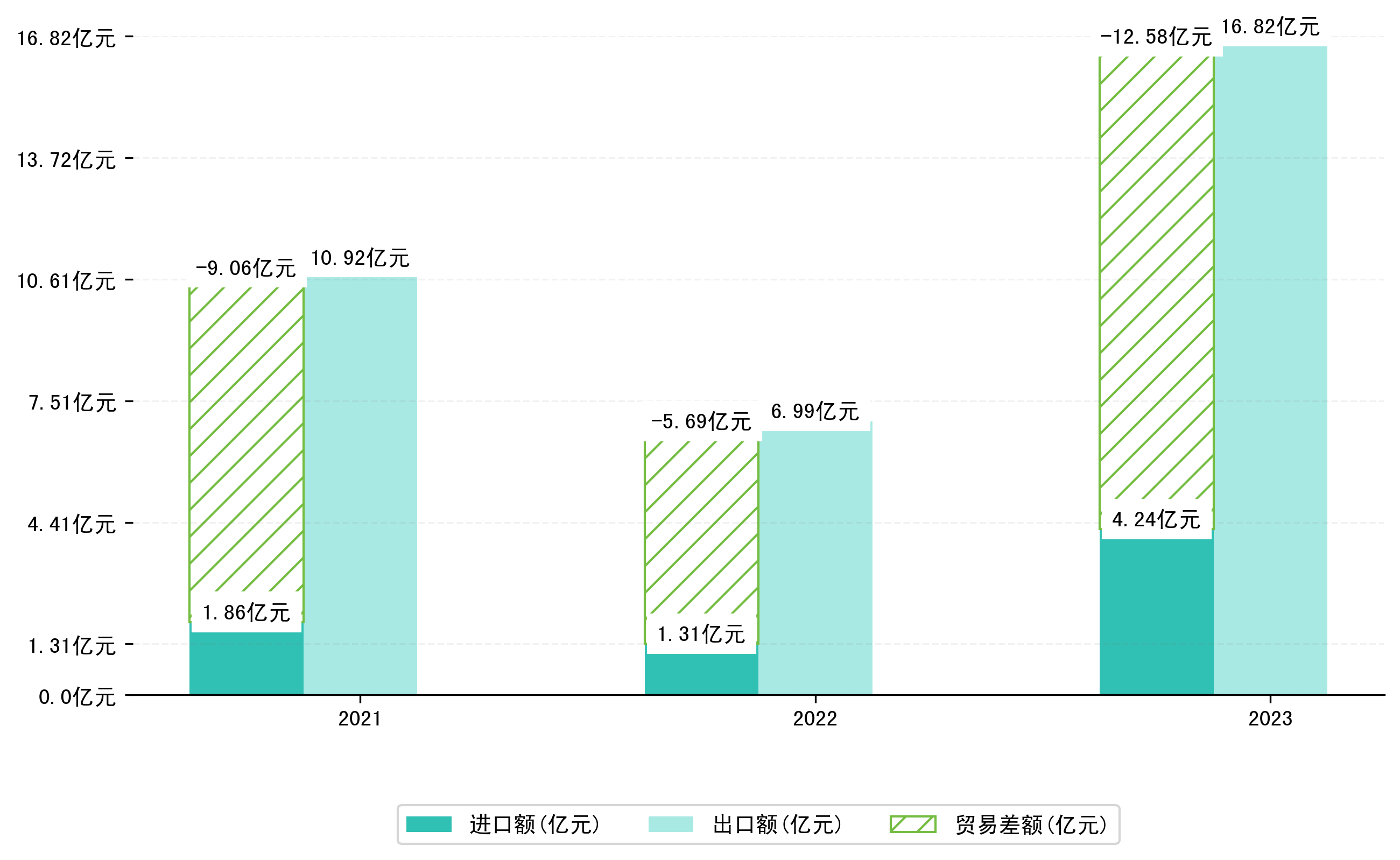 以美元计,2023年1-1月常德市贸易差额为1,7965,1006万美元(贸易顺差),相比上年同期增加了9041,4947万美元,同比增加101.32%。