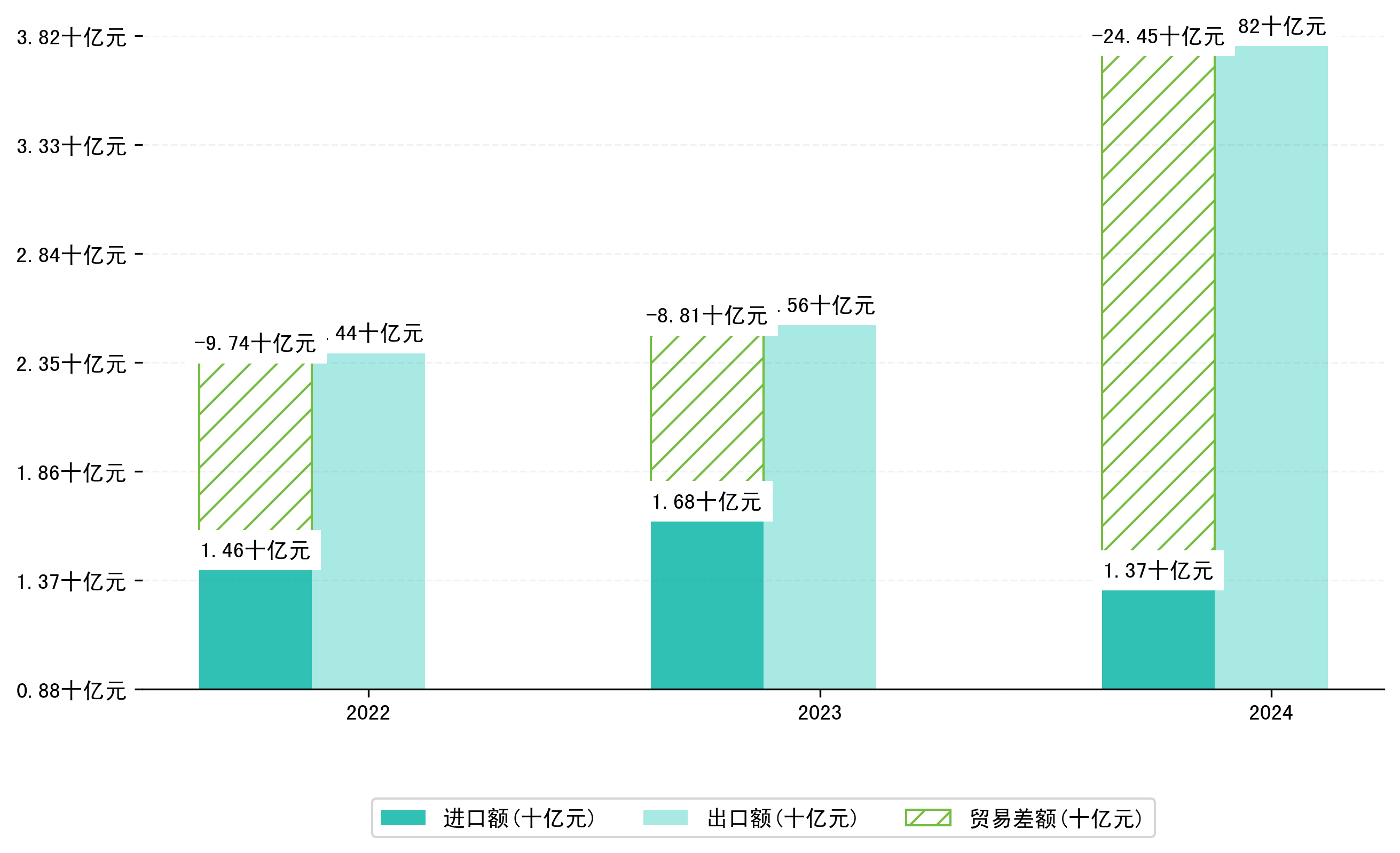 以人民币计,2024年1-11月青海省贸易差额为24,4459,4533万元(贸易顺差),相比上年同期增加了15,6360,0762万元,同比增加177.48%。