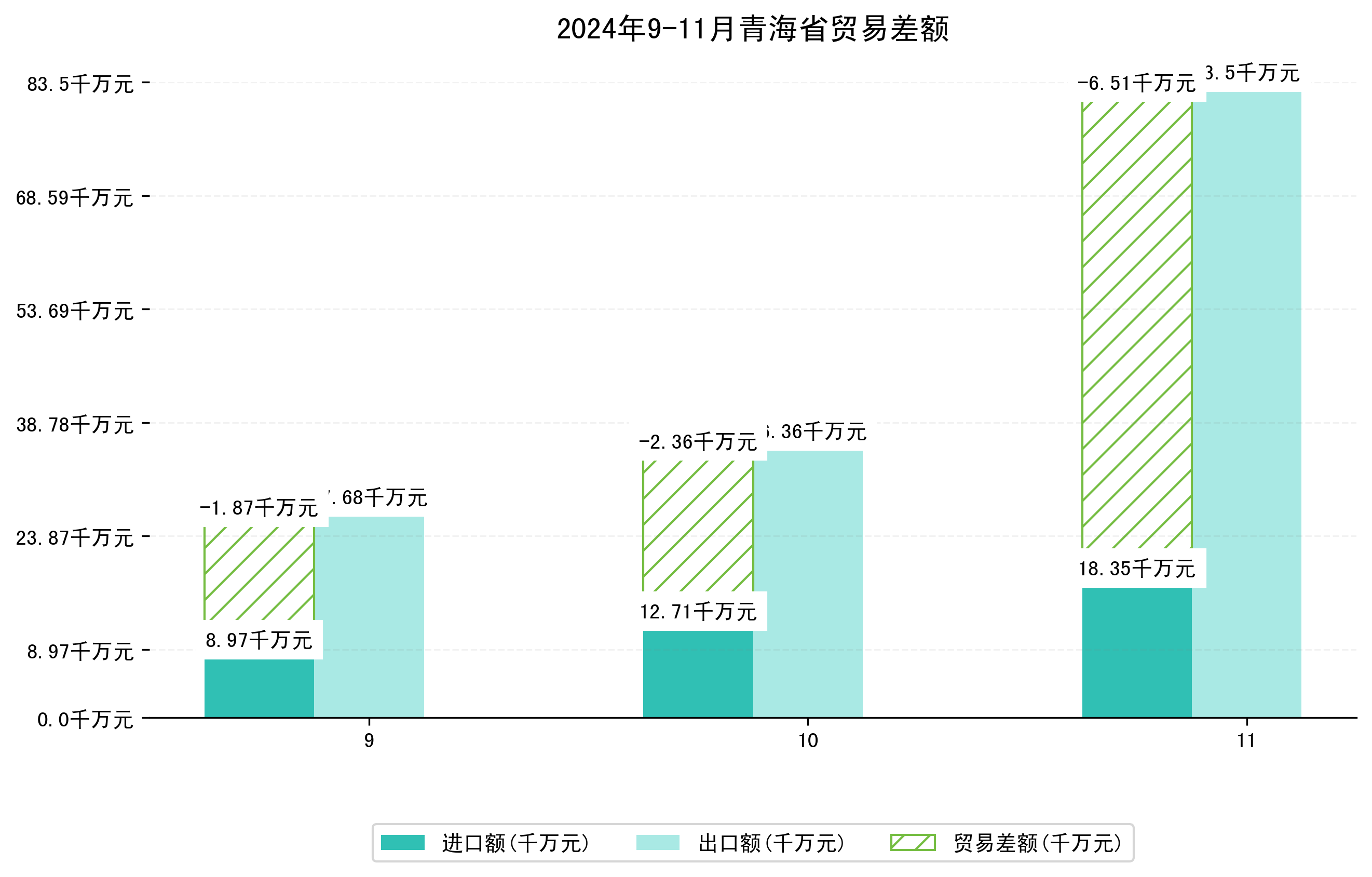 一、2024年11月青海省单月出口总额及进出口差额统计分析