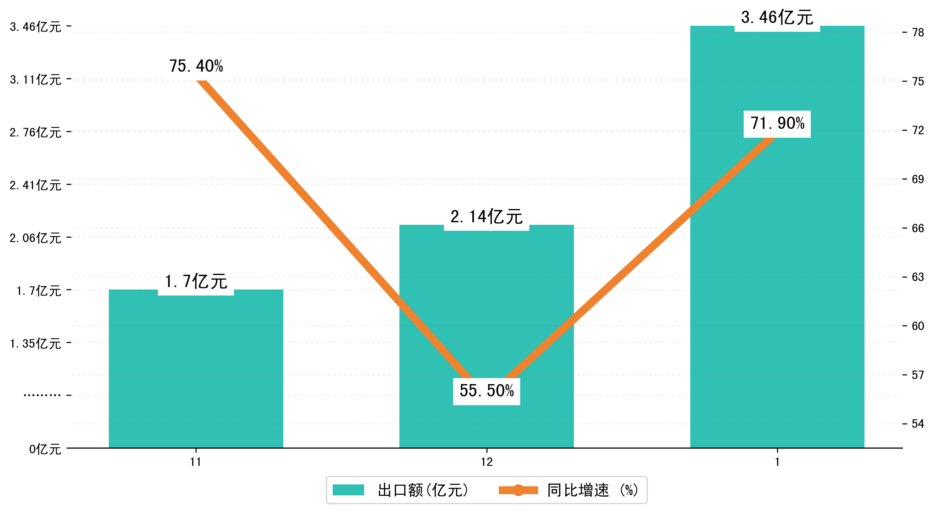以人民币计,2023年1月青海省出口额为3,4607.5467万元,相比上月增加了1,3254.616万元;相比上年同期增加了1,4543.1897万元,同比增加了71.90%。