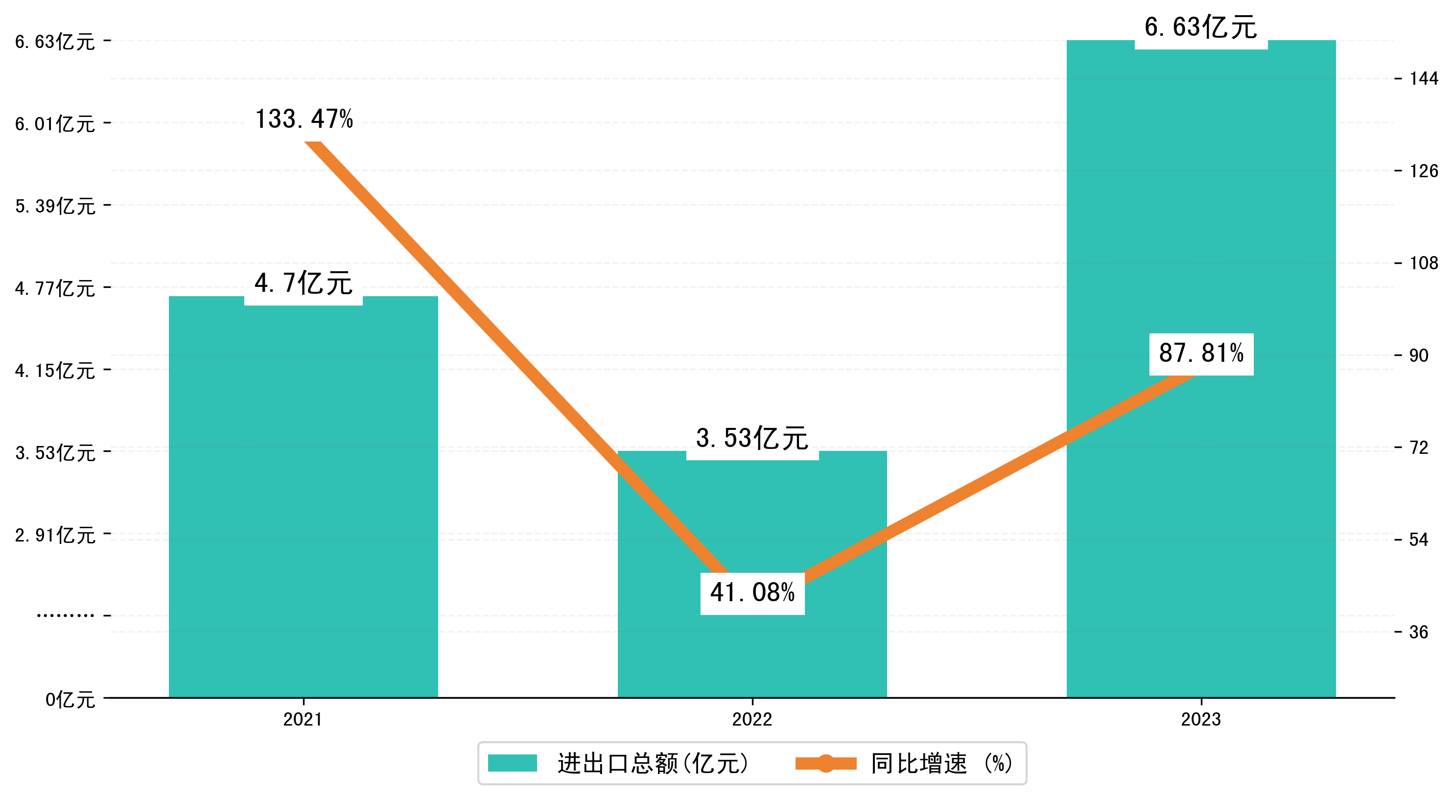 以人民币计,2023年1月青海省进出口总额为6,6331.3845万元,相比上月增加了2,7040.3752万元;相比上年同期增加了3,1012.312万元,同比增加了87.70%。