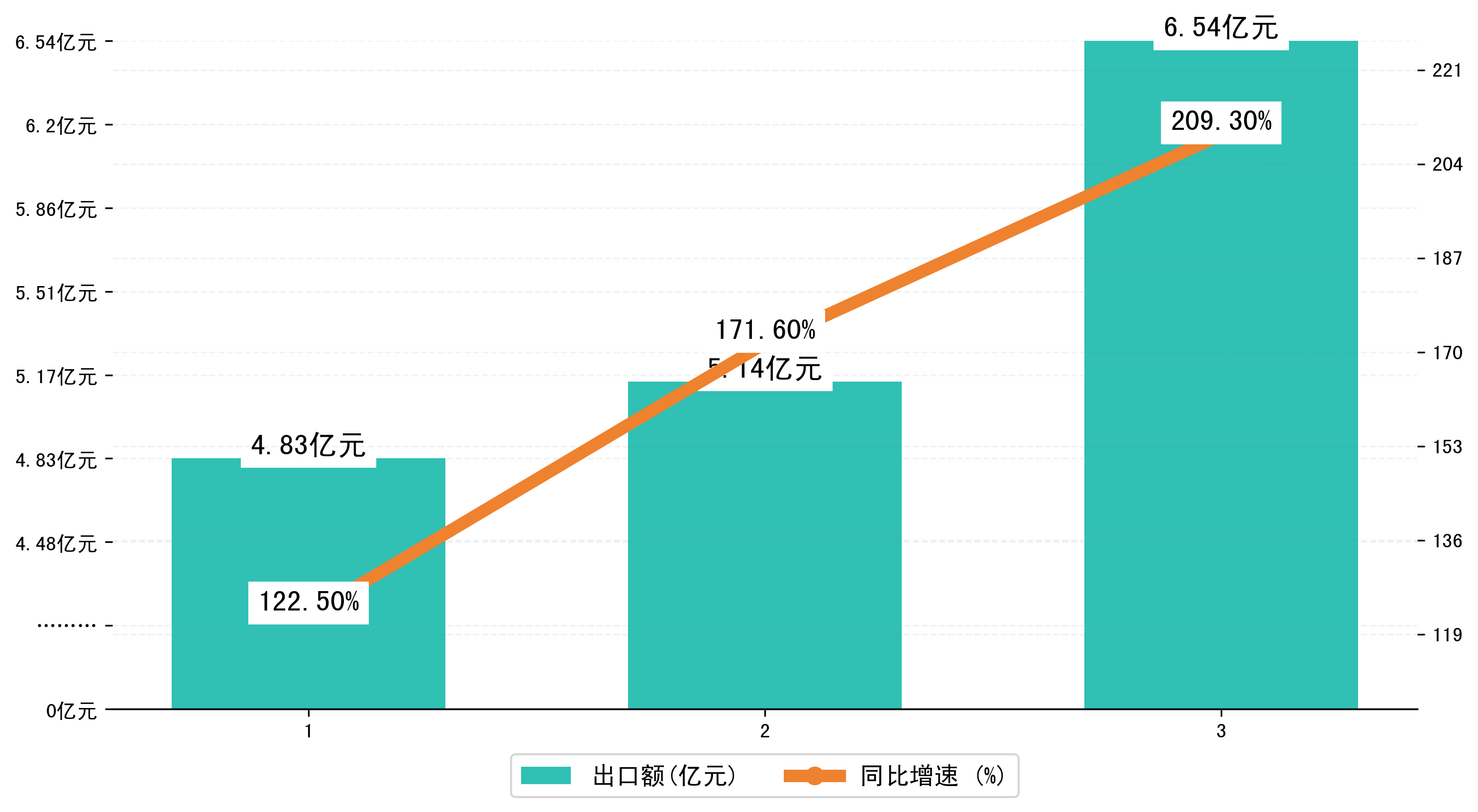 以人民币计,2025年1-3月青海省出口额为16,5098.9944万元,相比上年同期增加了11,1728.0514万元,同比增加了209.30%。