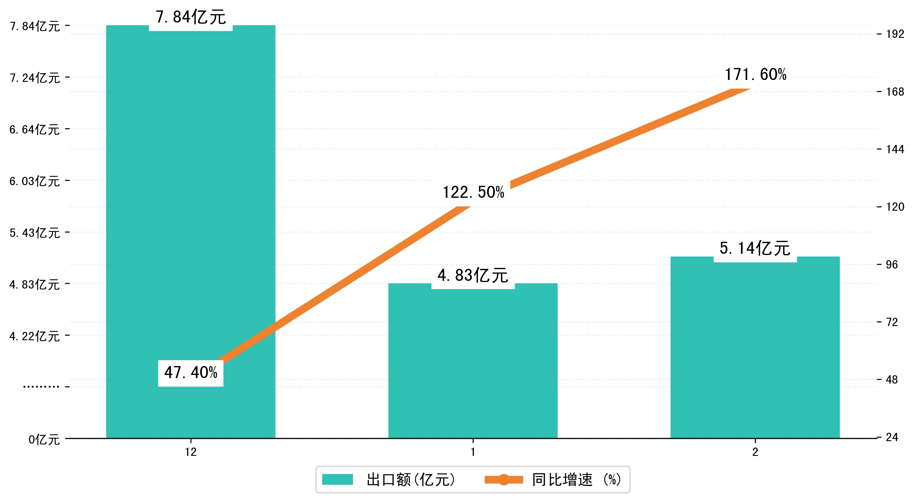 以美元计,2025年2月青海省出口额为7159.8832万美元,相比上月增加了446.4946万美元;相比上年同期增加了5049.0312万美元,同比增加168.80%。