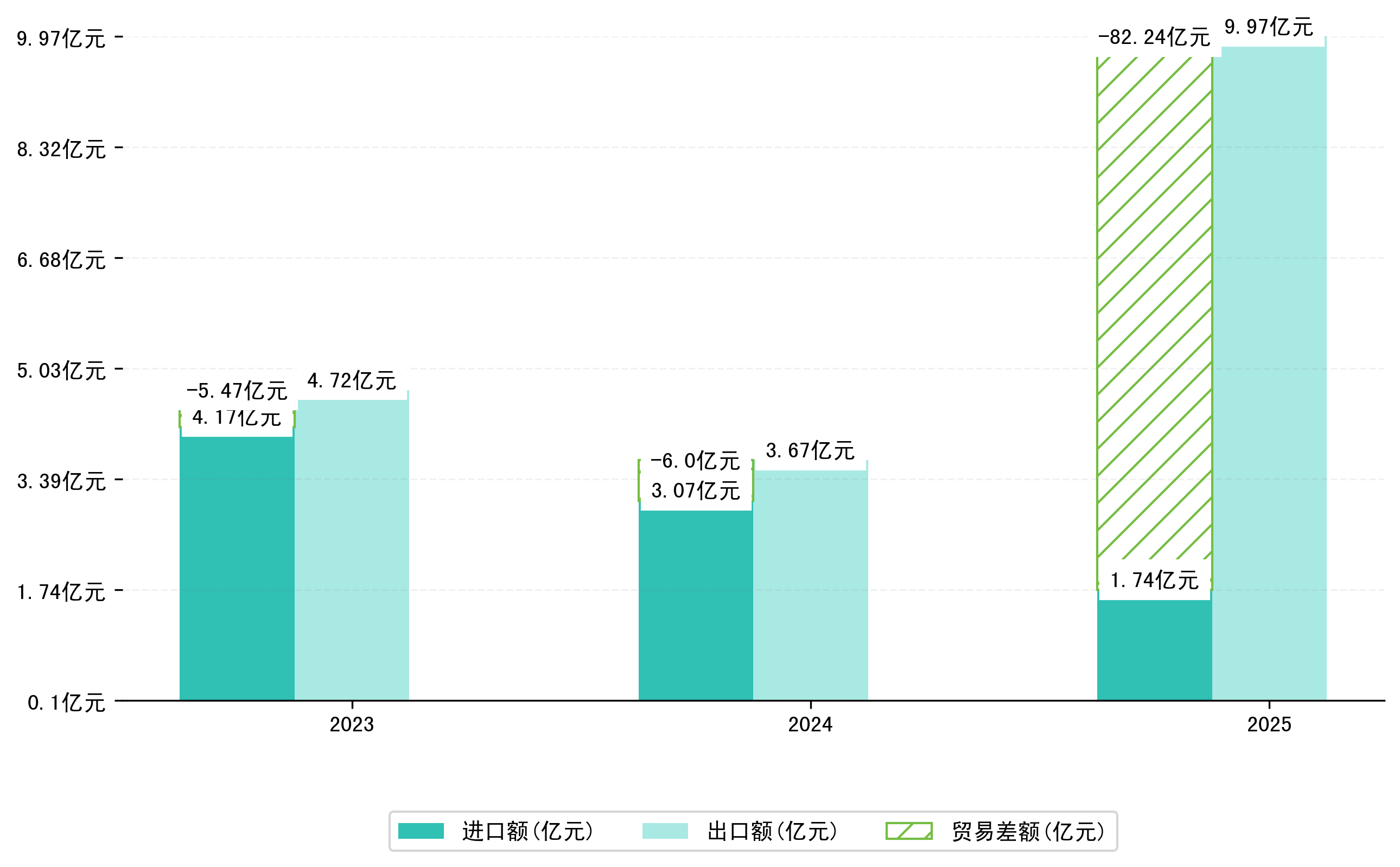 以人民币计,2025年1-2月青海省贸易差额为8,2239,8914万元(贸易顺差),相比上年同期增加了7,6240,8316万元,同比增加1270.88%。