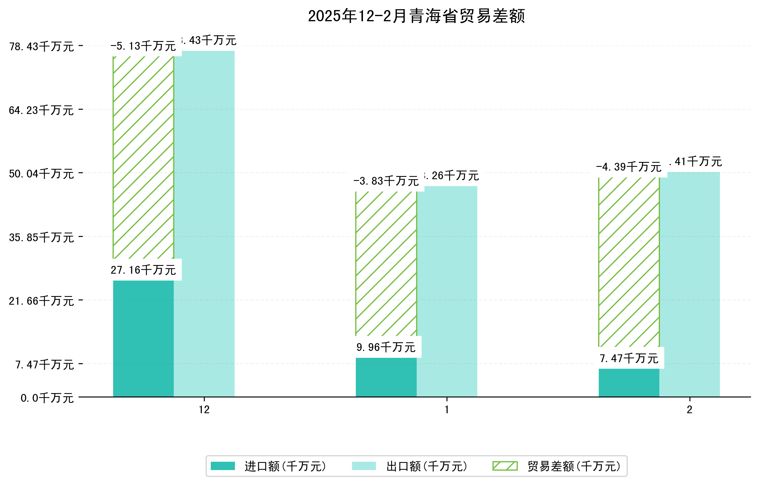 一、2025年2月青海省单月出口总额及进出口差额统计分析