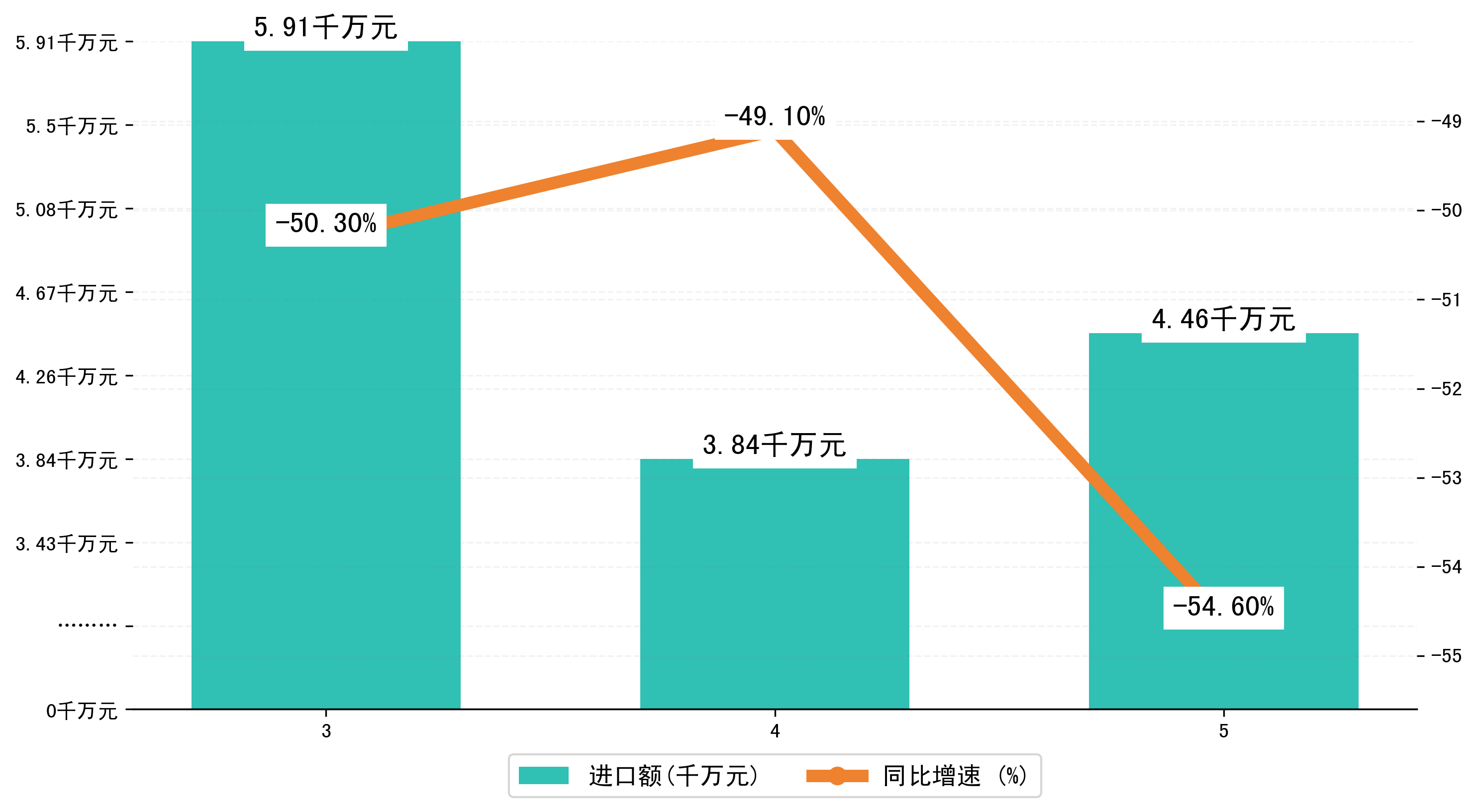 以人民币计,2025年5月青海省进口额为4463.5338万元,相比上月增加了622.1926万元;相比上年同期减少了1,1473.3415万元,同比减少了-54.60%。