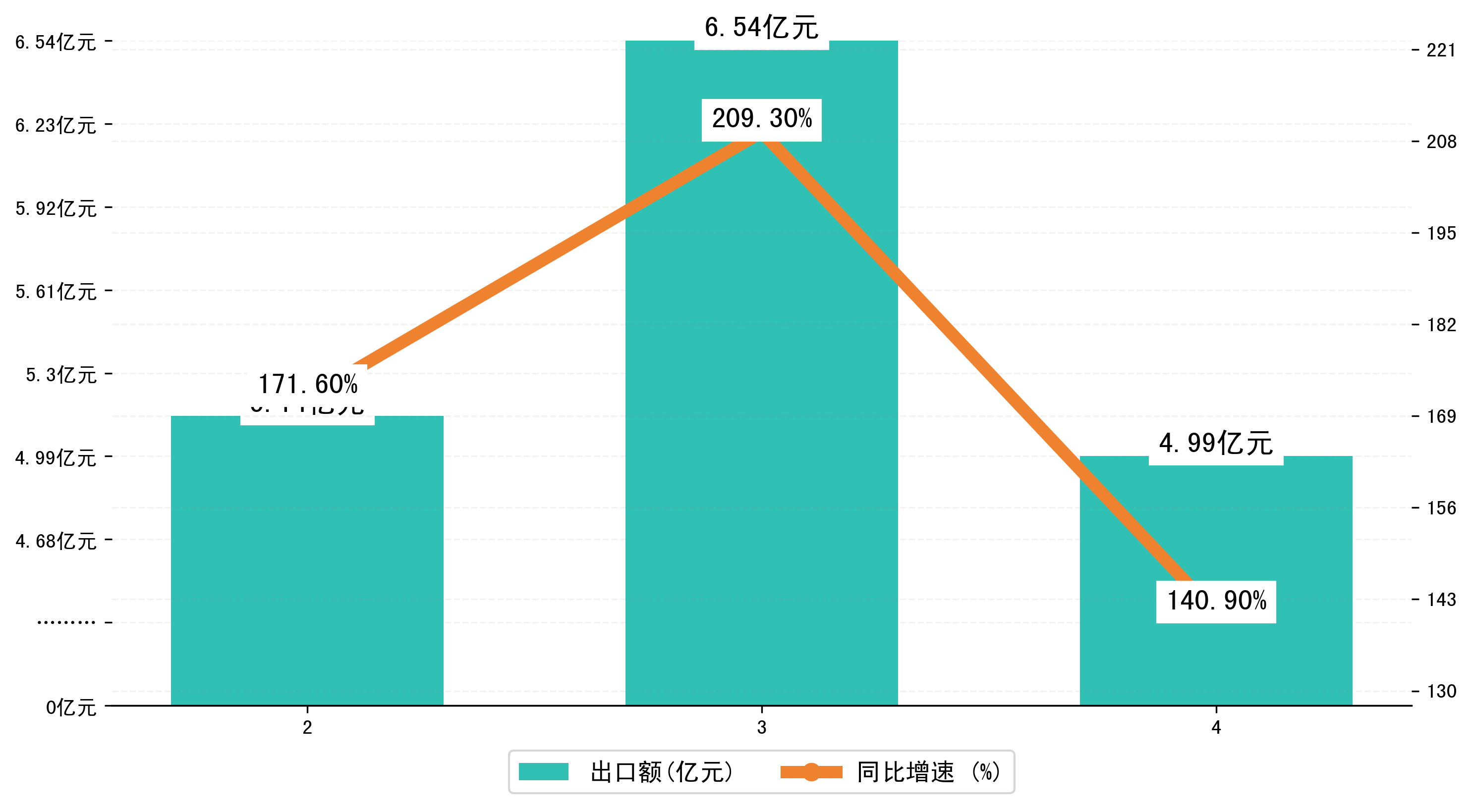 以人民币计,2025年1-4月青海省出口额为21,5014.9389万元,相比上年同期增加了12,5771.1855万元,同比增加了140.90%。