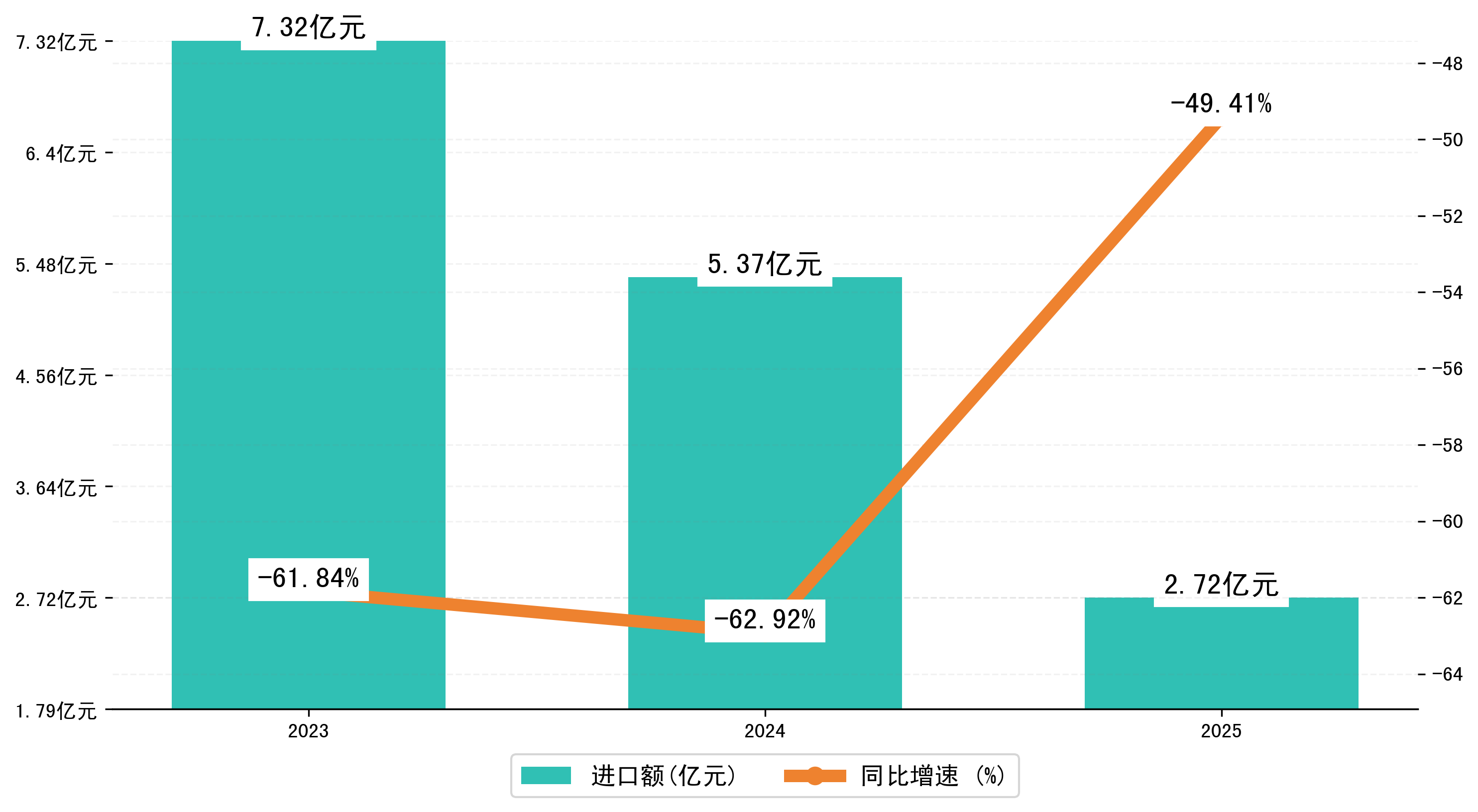 以人民币计,2025年1-4月青海省进口额为2,7157.9029万元,相比上年同期减少了2,6519.2422万元,同比减少了-49.10%。