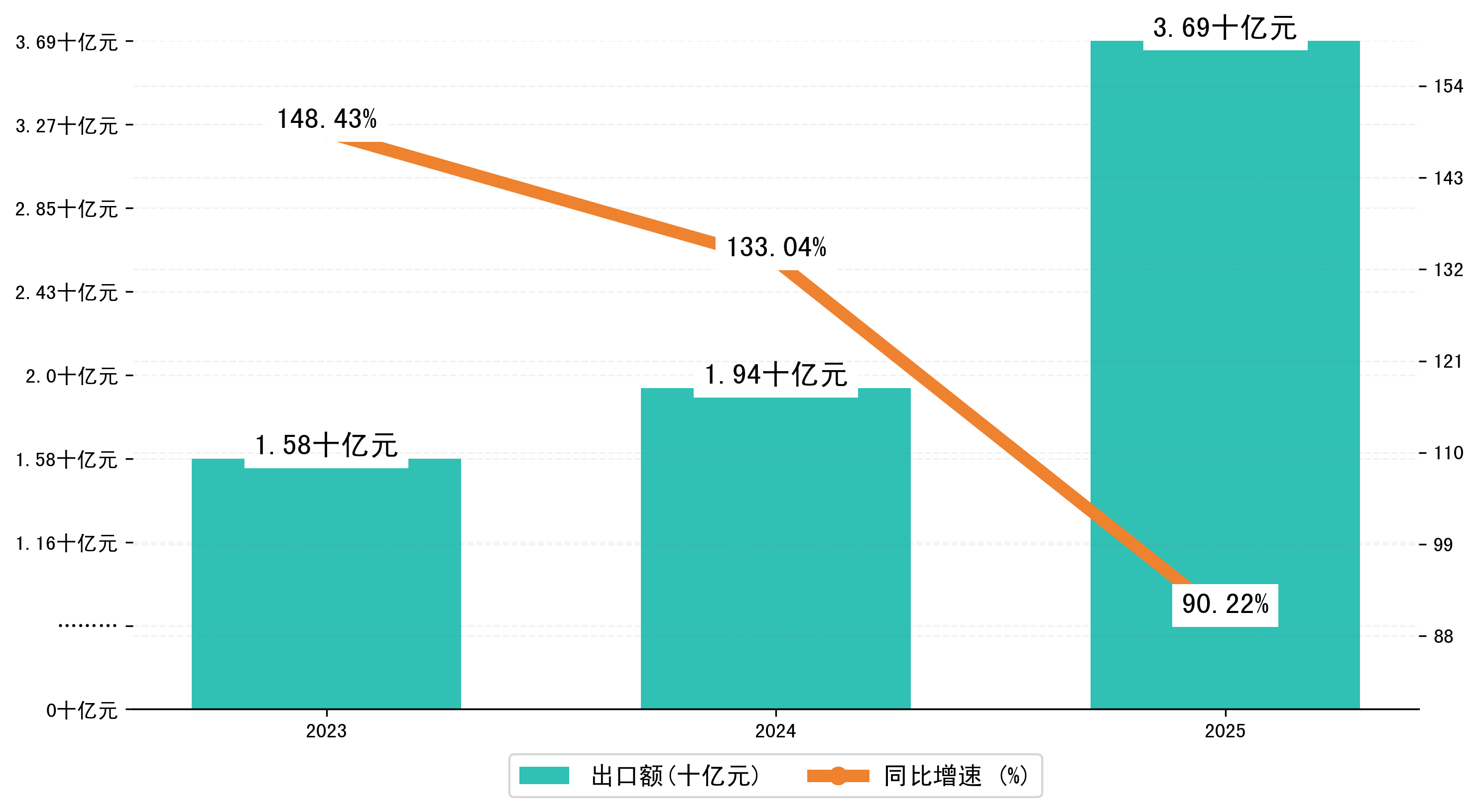 以人民币计,2025年1-7月青海省出口额为36,8892.6039万元,相比上年同期增加了17,4966.7153万元,同比增加了90.30%。