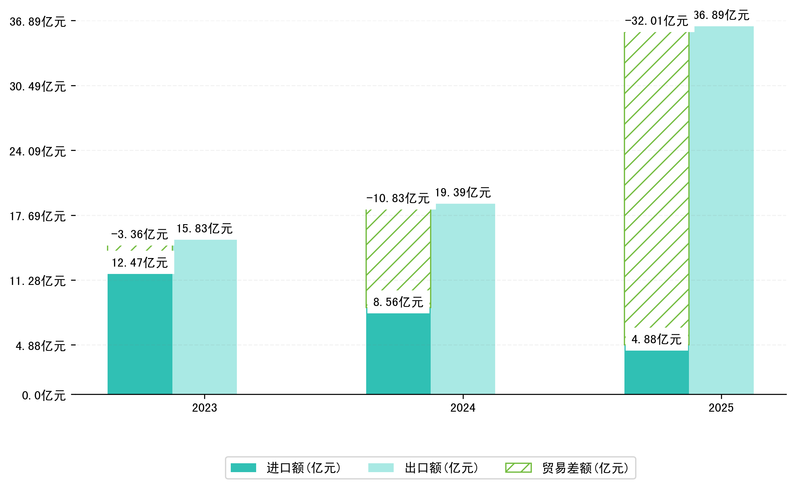以人民币计,2025年1-7月青海省贸易差额为32,0065,7015万元(贸易顺差),相比上年同期增加了21,1760,8147万元,同比增加195.52%。