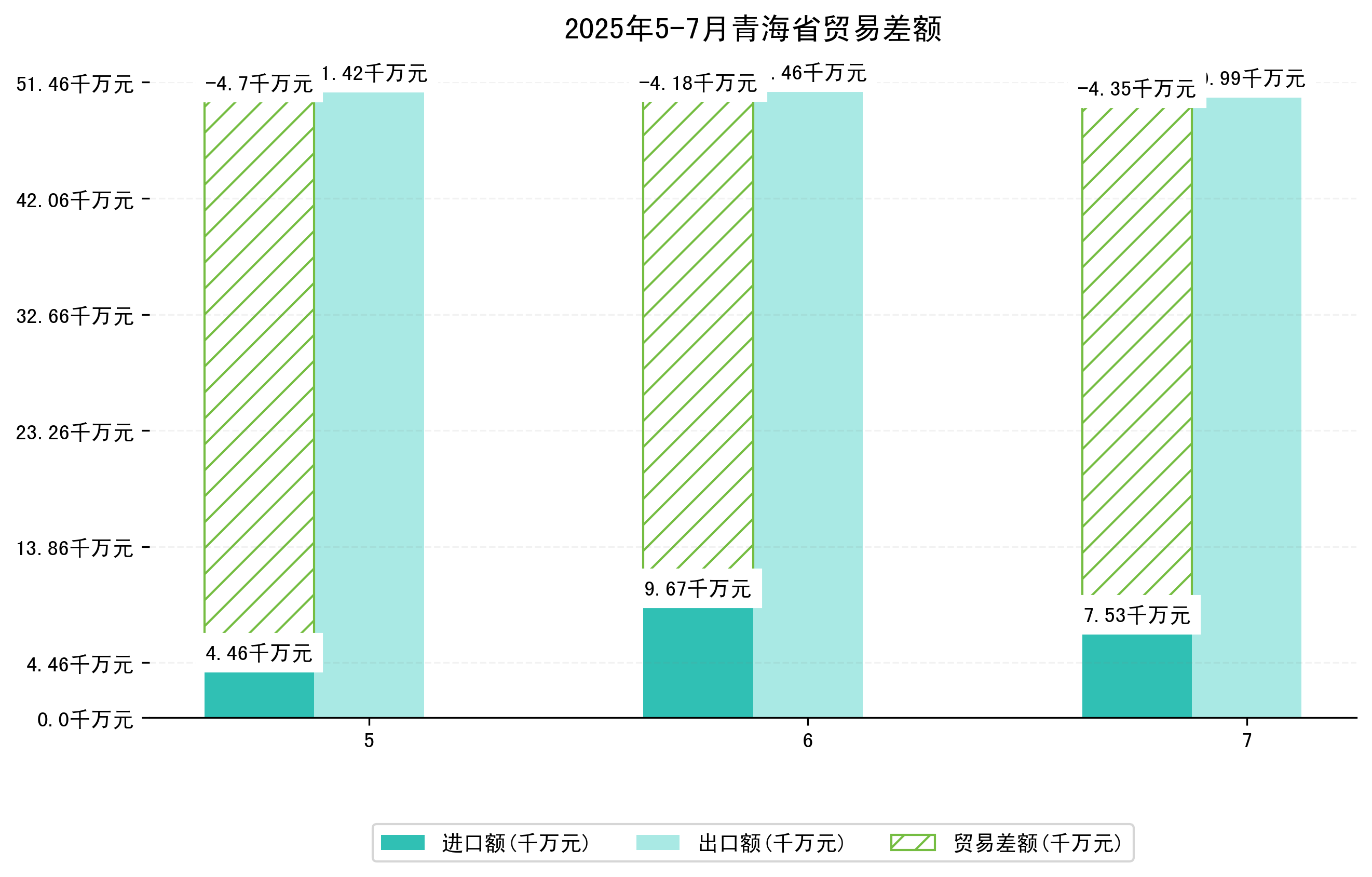 一、2025年7月青海省单月出口总额及进出口差额统计分析