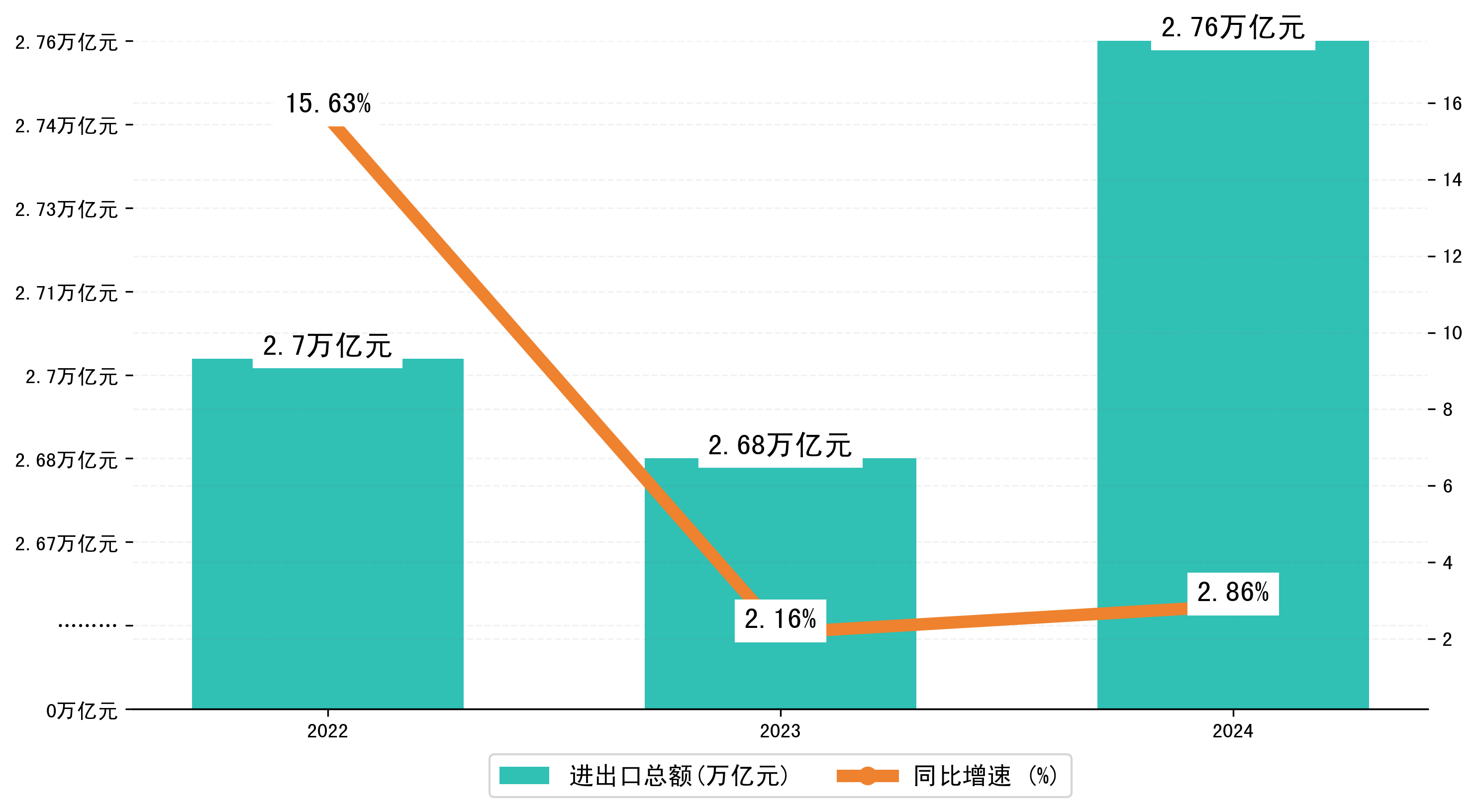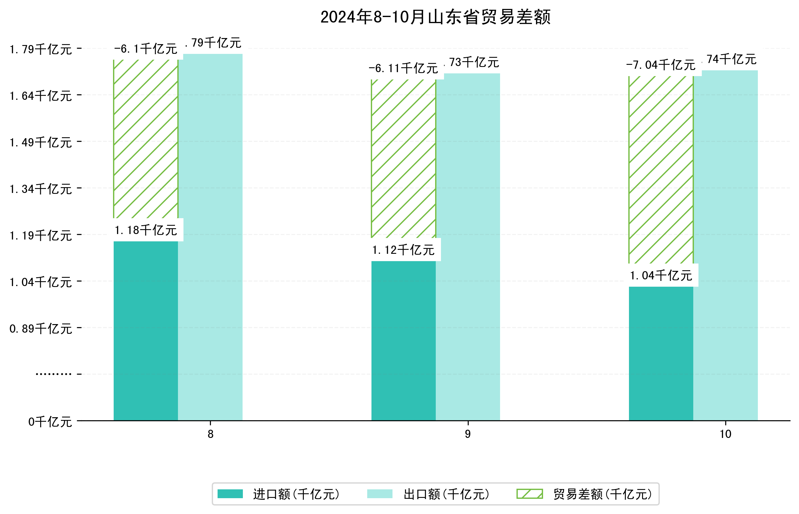 以人民币计,2024年1-10月山东省进出口总额为2,7600,8957.3847万元,相比上年同期增加了767,4153.7228万元,同比增加了3.10%。