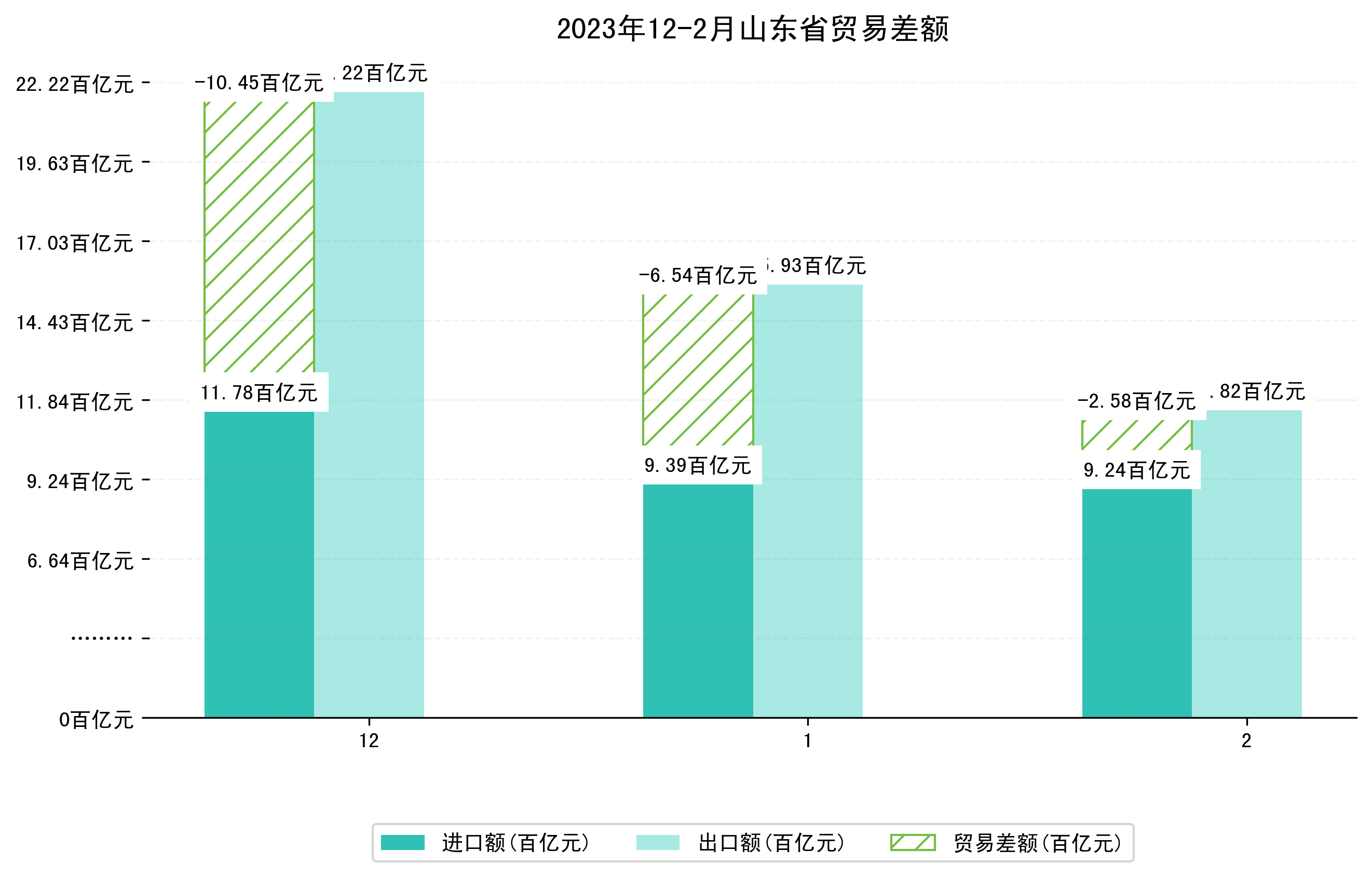 (图一:2023年12-2月山东省进出口总额)