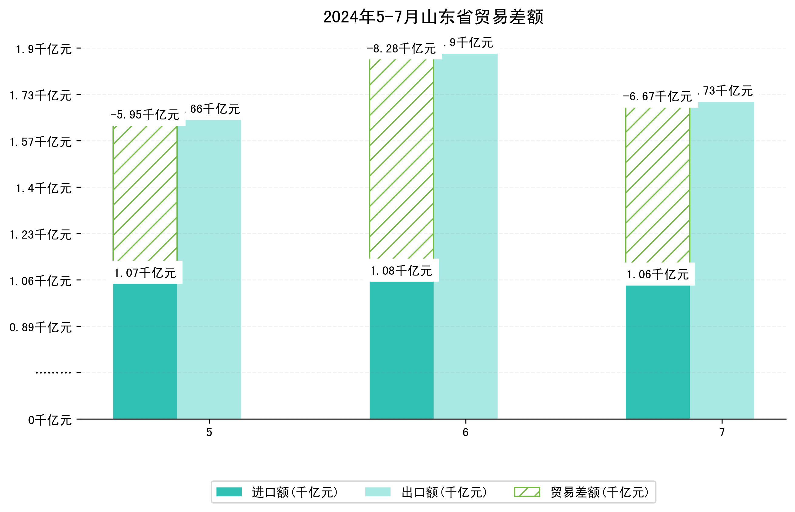 (图一:2024年5-7月山东省进出口总额)