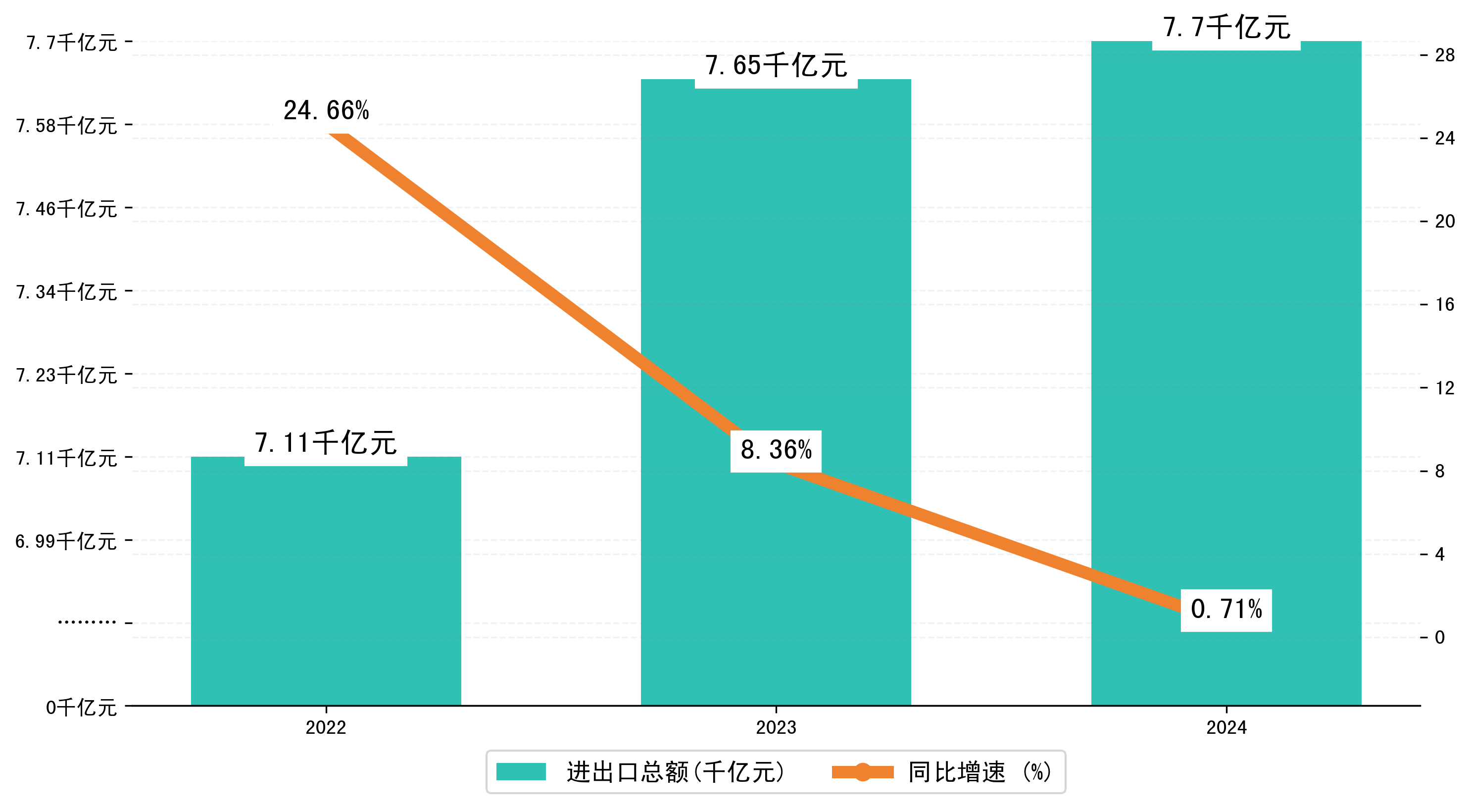以人民币计,2024年1-3月山东省进出口总额为7700,6273.5747万元,相比上年同期增加了54,3804.5617万元,同比增加了5.50%。