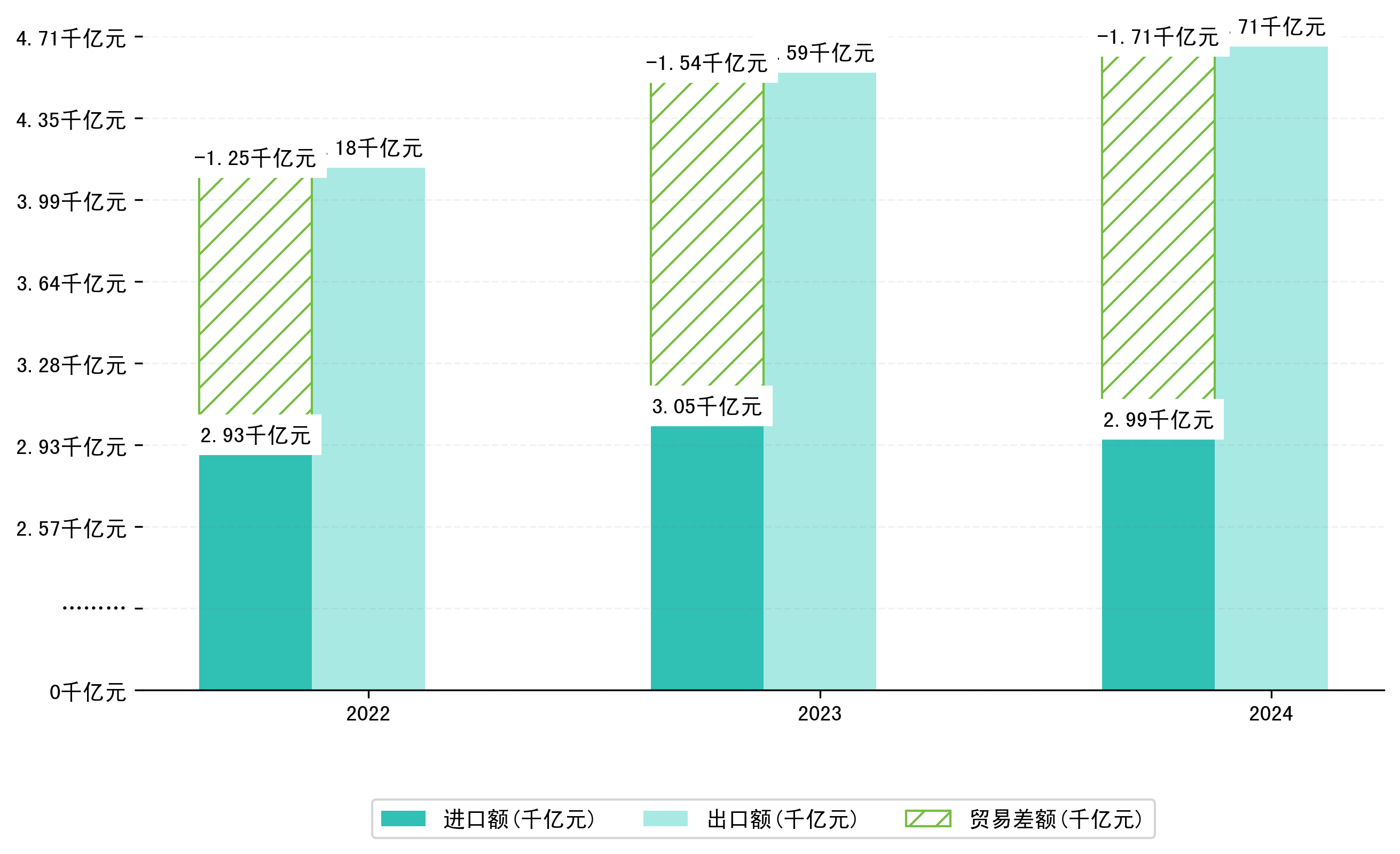 以人民币计,2024年1-3月山东省贸易差额为1711,7539,4259万元(贸易顺差),相比上年同期增加了172,2802,7237万元,同比增加11.19%。
