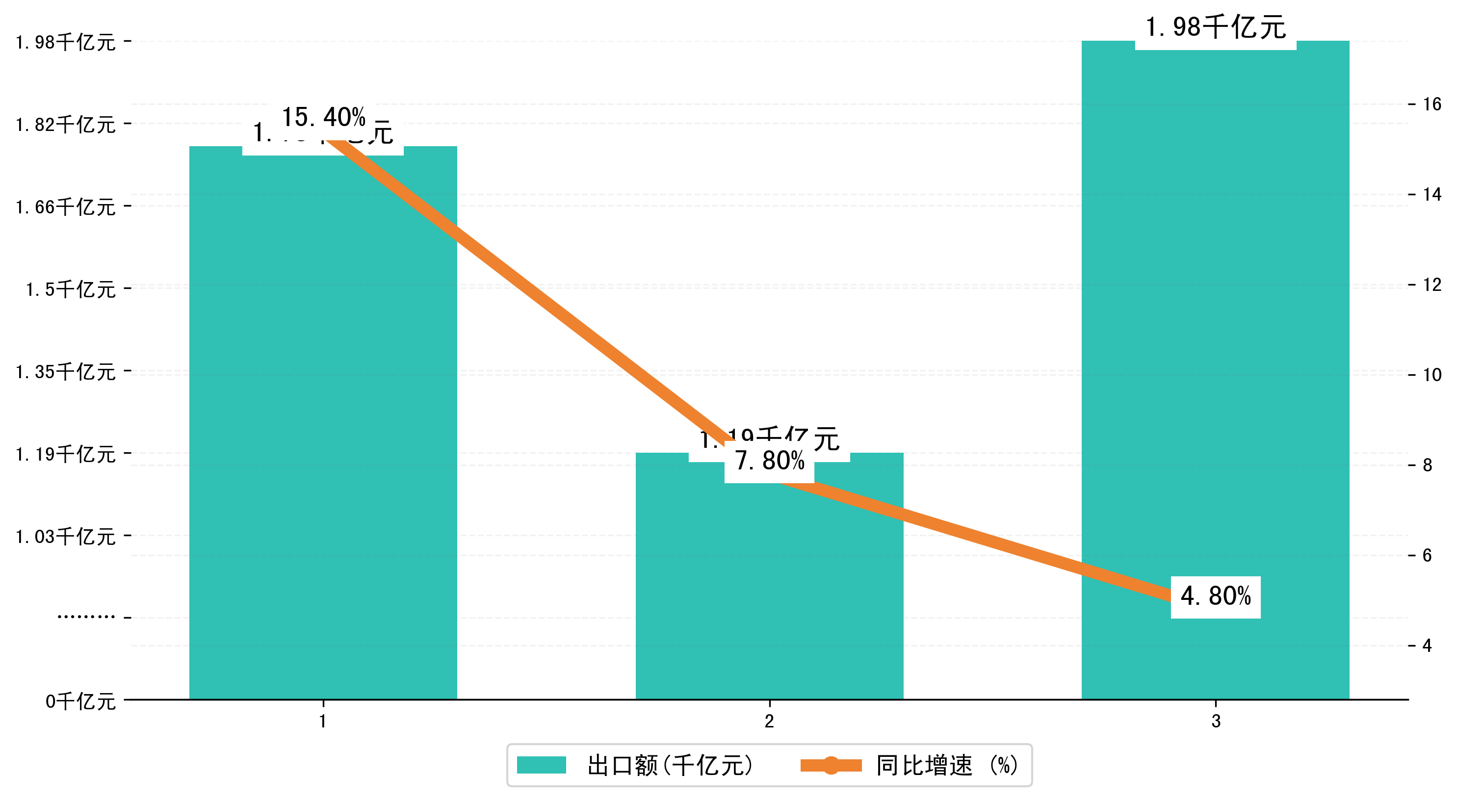 以人民币计,2025年1-3月山东省出口额为4942,2518.3706万元,相比上年同期增加了236,0611.8703万元,同比增加了4.80%。
