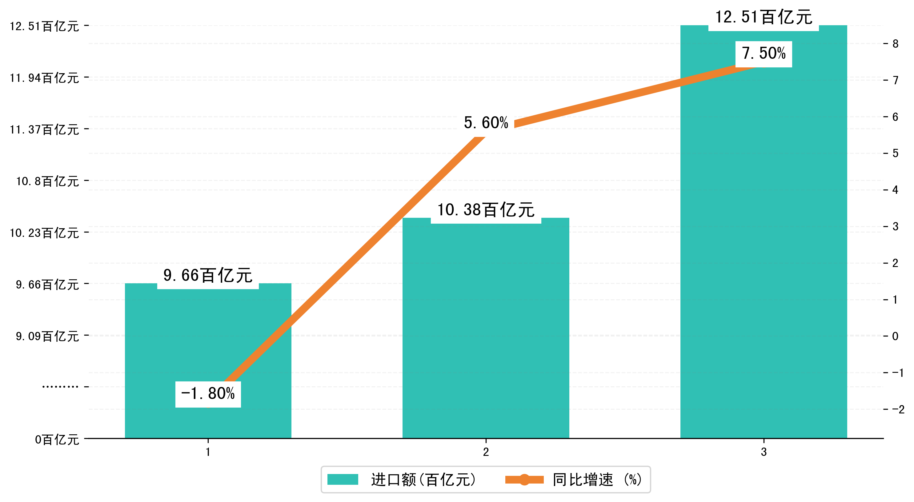 以人民币计,2025年3月山东省进口额为1250,5069.6372万元,相比上月增加了212,4705.2405万元;相比上年同期增加了128,1749.9206万元,同比增加了7.50%。