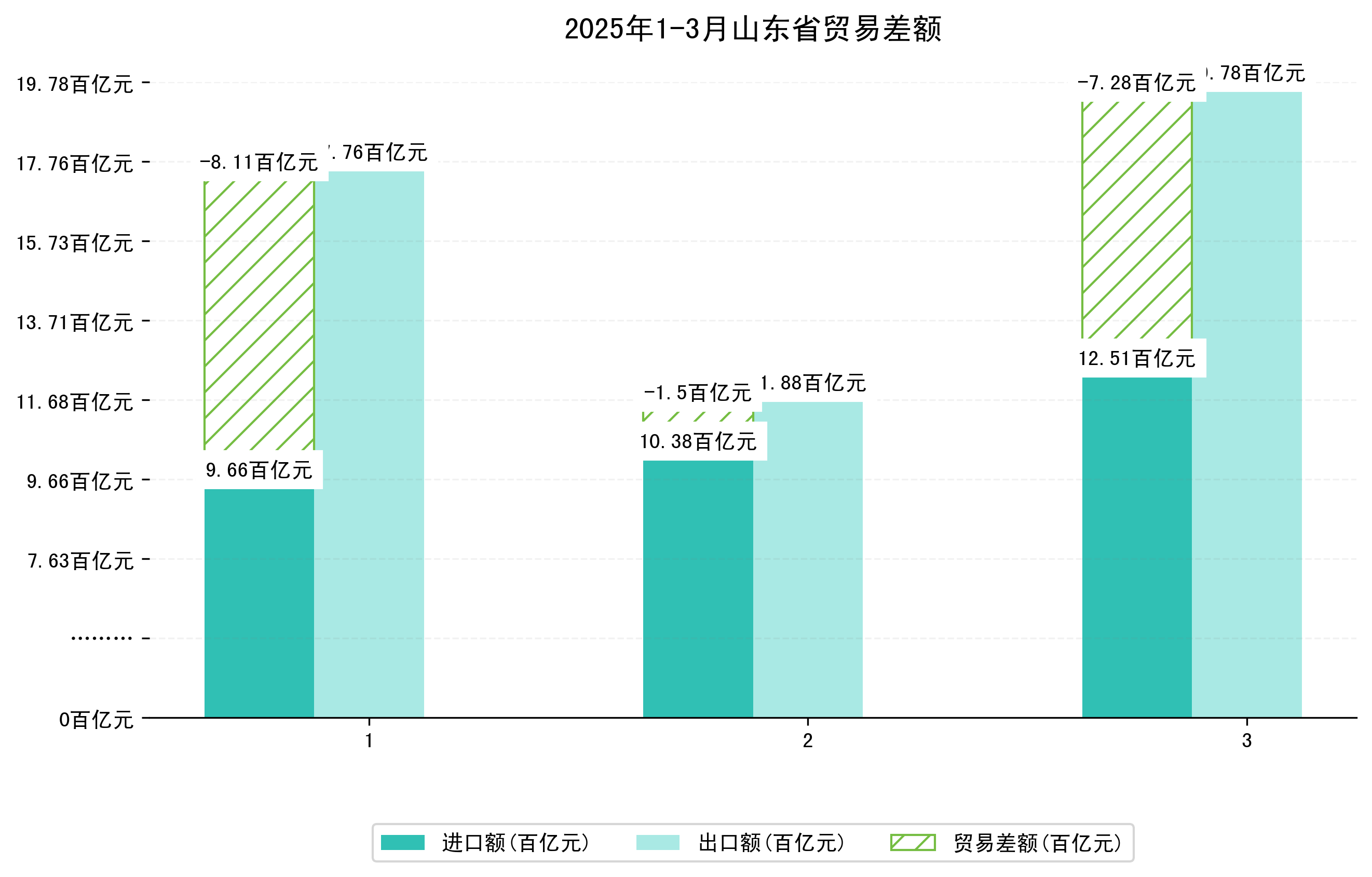 一、2025年3月山东省单月出口总额及进出口差额统计分析