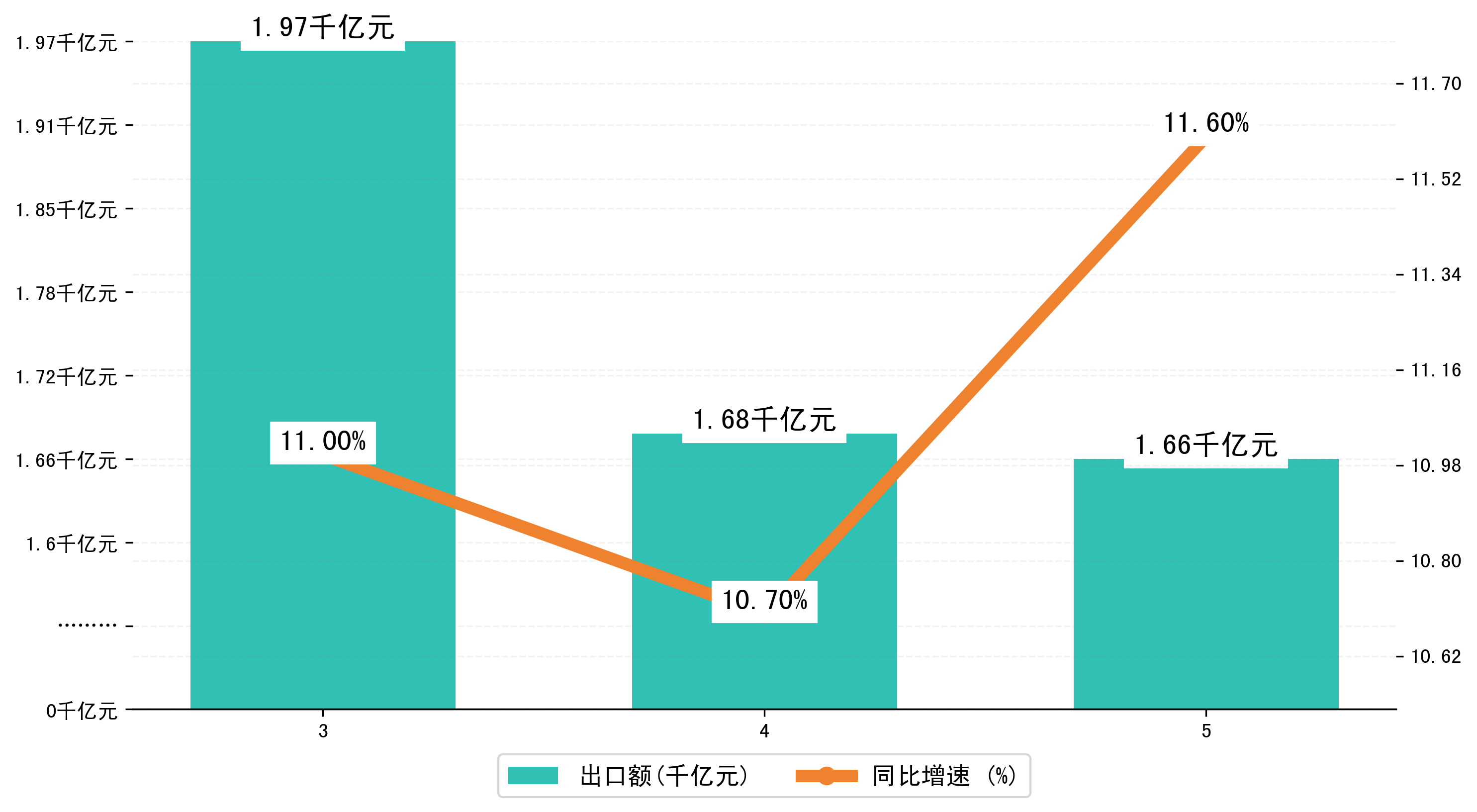 以美元计,2024年1-5月山东省出口额为1133,3460.7502万美元,相比上年同期增加了16,5818.6005万美元,同比增加7.90%。