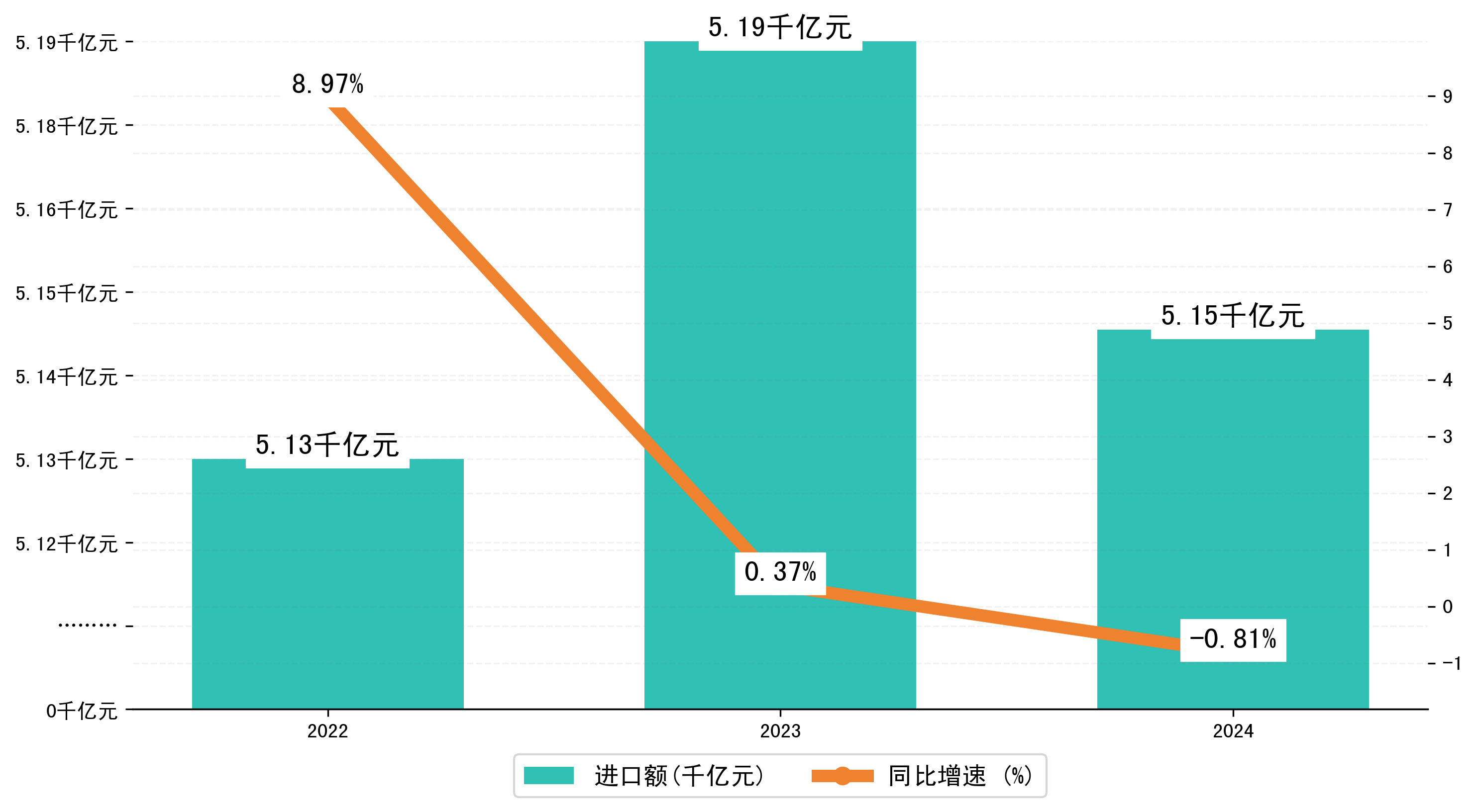 以人民币计,2024年1-5月山东省进口额为5146,7121.1501万元,相比上年同期减少了42,2736.6979万元,同比减少了-0.50%。