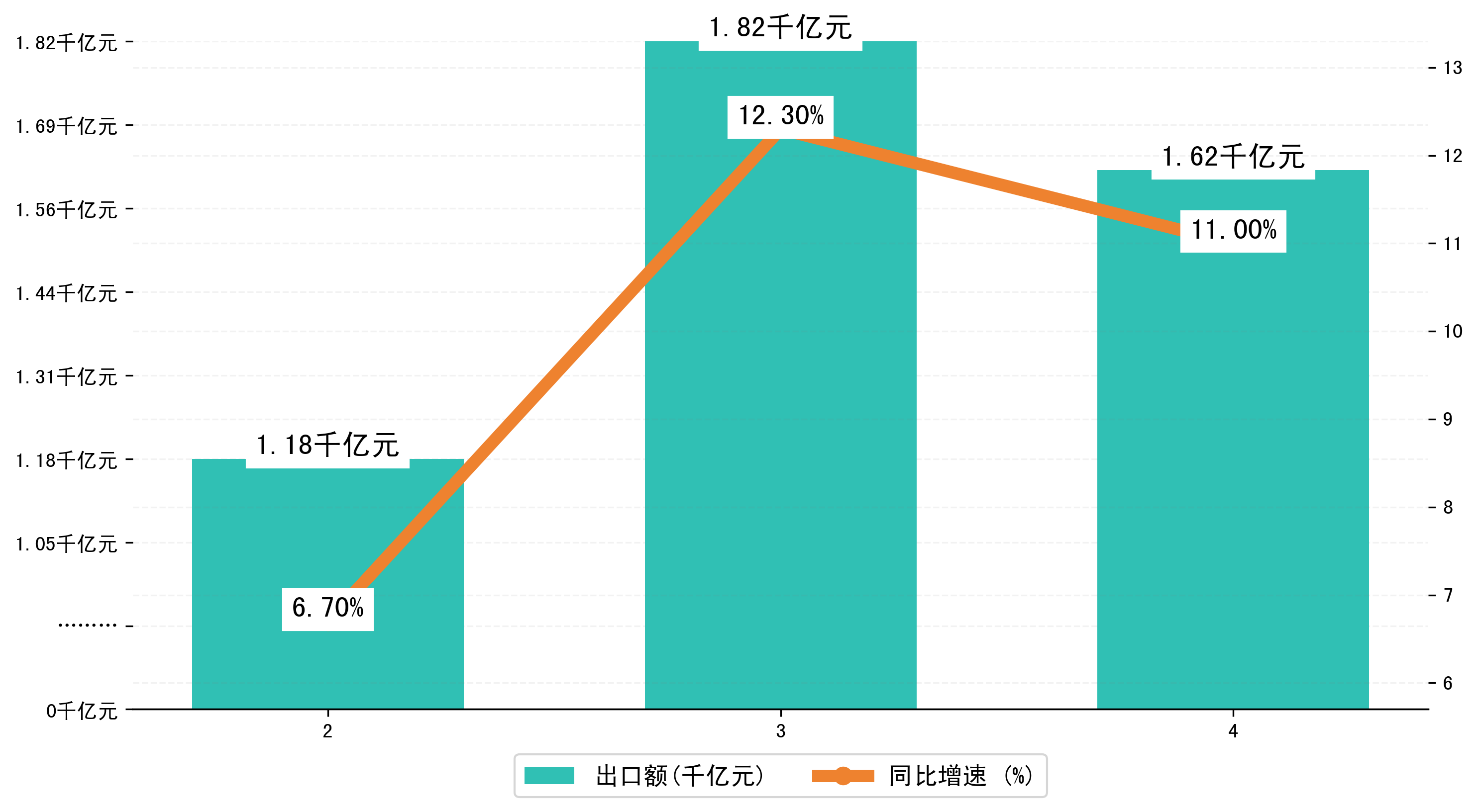 以美元计,2023年1-4月山东省出口额为905,1759.2273万美元,相比上年同期增加了5,6049.0497万美元,同比增加3.00%。