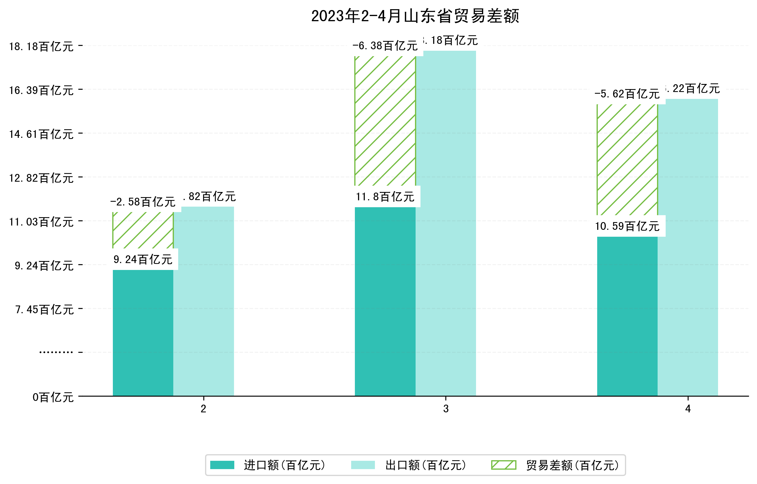 以人民币计,2023年4月山东省贸易差额为562,3070,6479万元(贸易顺差),相比上月减少了76,0268,2829万元,即11,6483,1700万美元;相比上年同期增加了24,9006,5218万元,同比增加4.63%。