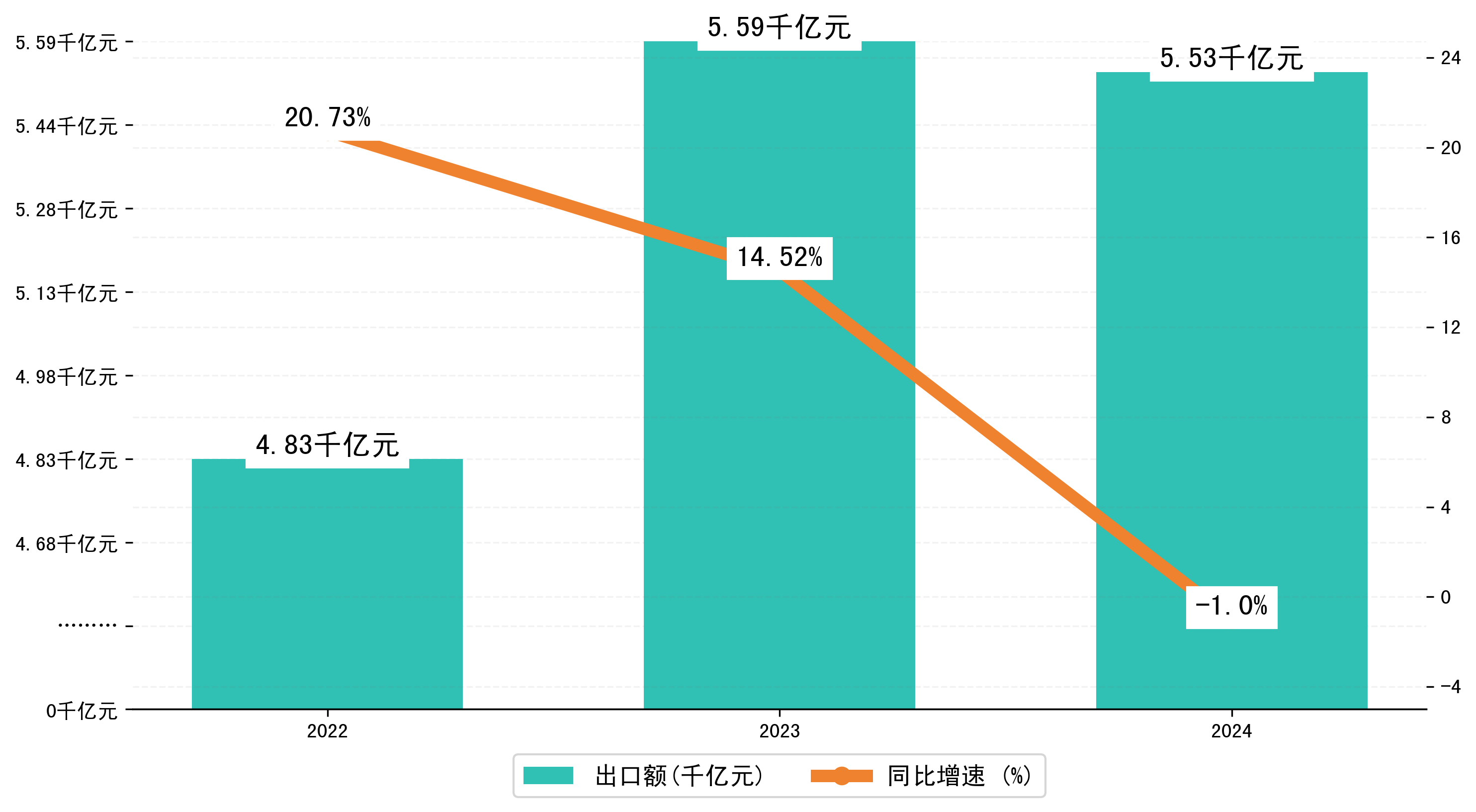 以美元计,2024年1-4月上海市出口额为778,6113.6765万美元,相比上年同期减少了34,6364.236万美元,同比减少-3.60%。