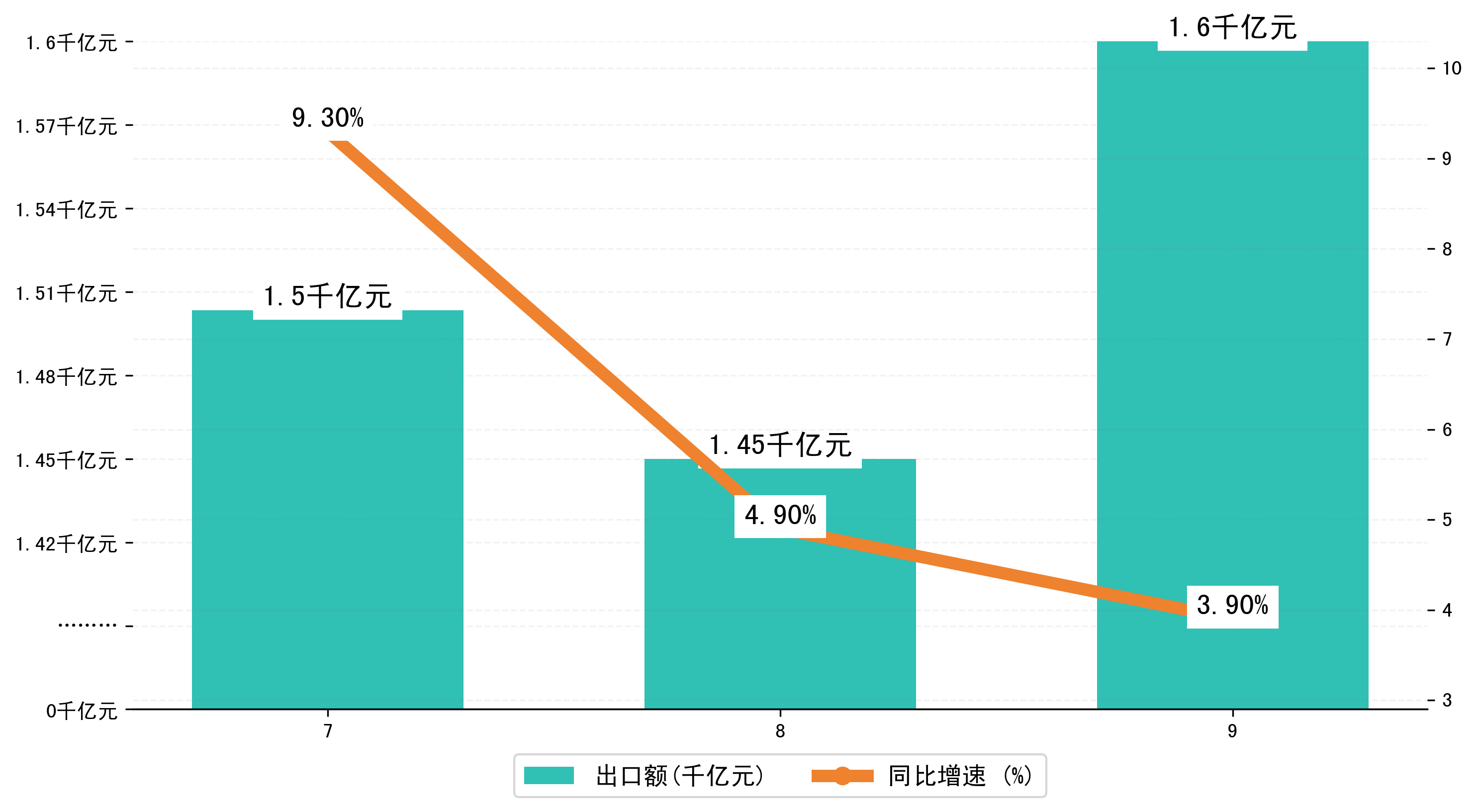 一、2023年9月上海市单月出口总额及进出口差额统计分析