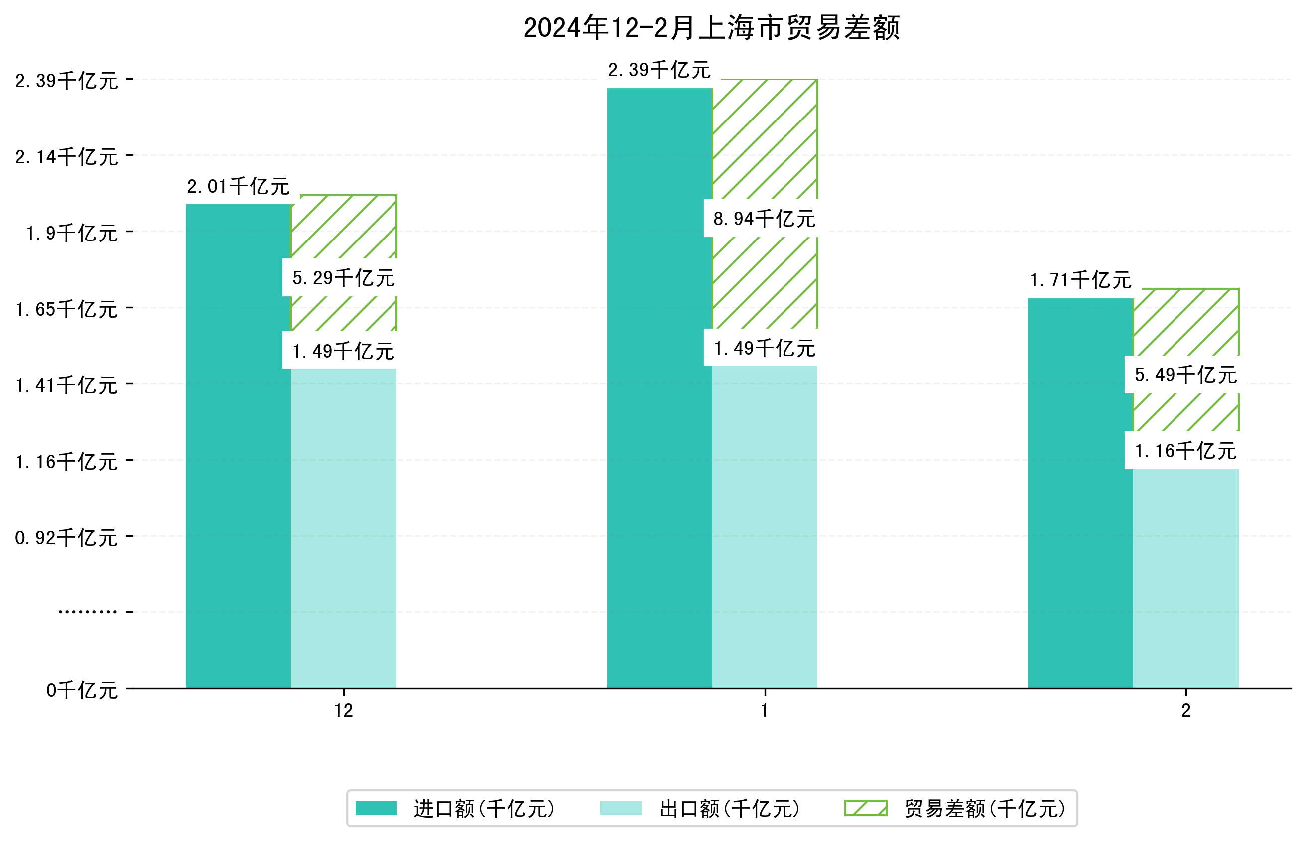 (图一:2024年12-2月上海市进出口总额)