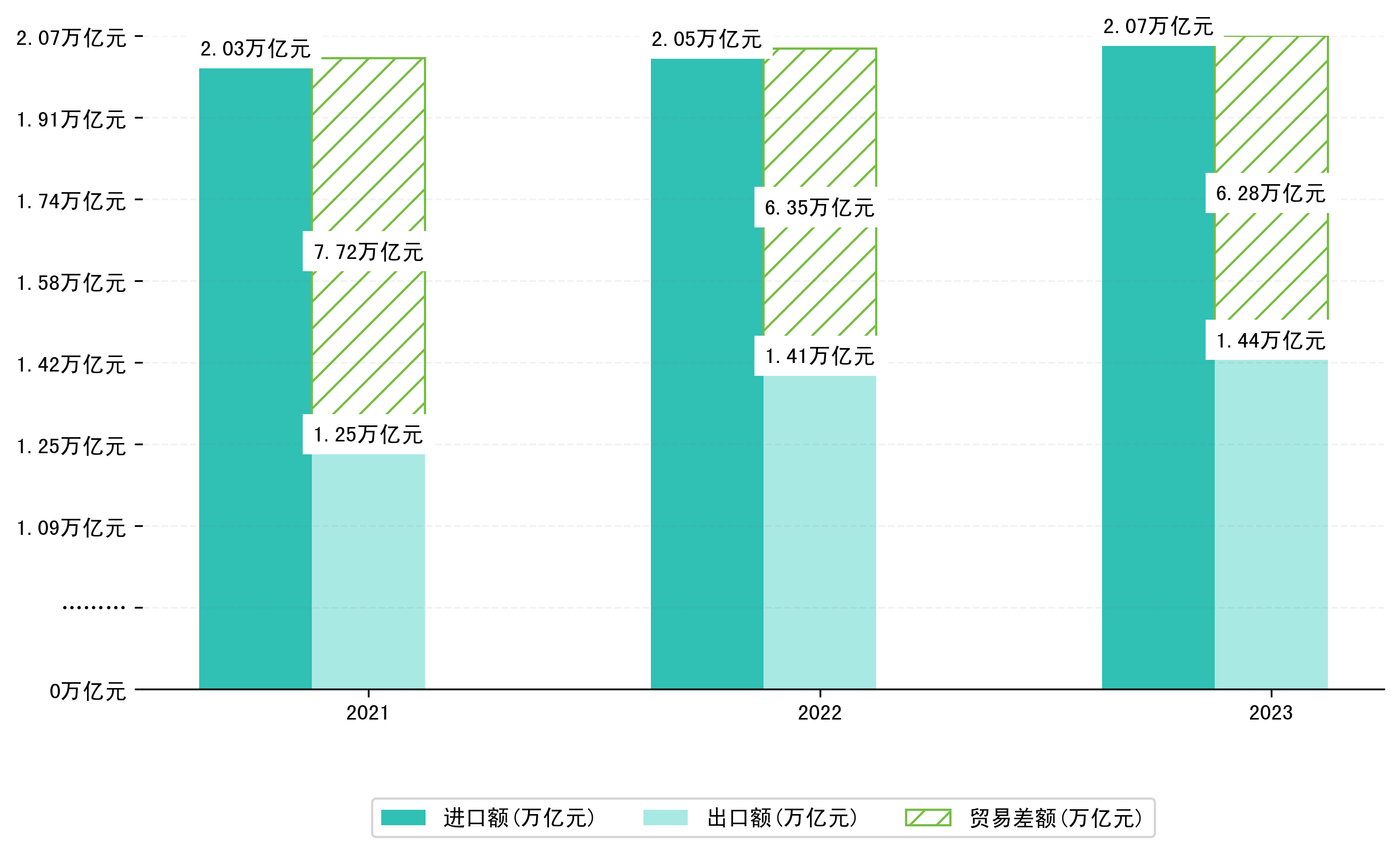 以人民币计,2023年1-10月上海市贸易差额为6278,6196,8594万元(贸易逆差),相比上年同期增加了67,0249,8245万元,同比增加-1.06%。