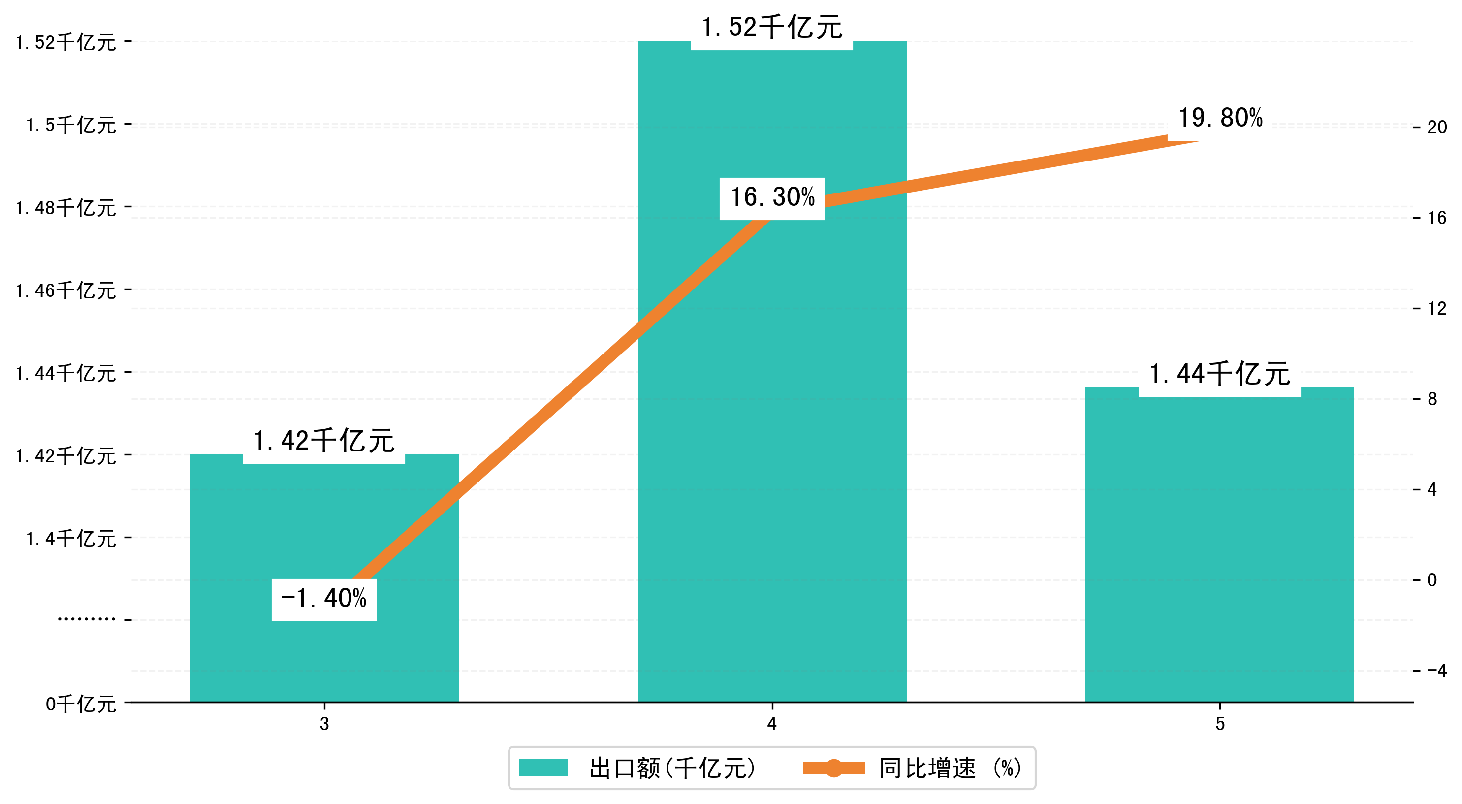 一、2023年5月上海市单月出口总额及进出口差额统计分析
