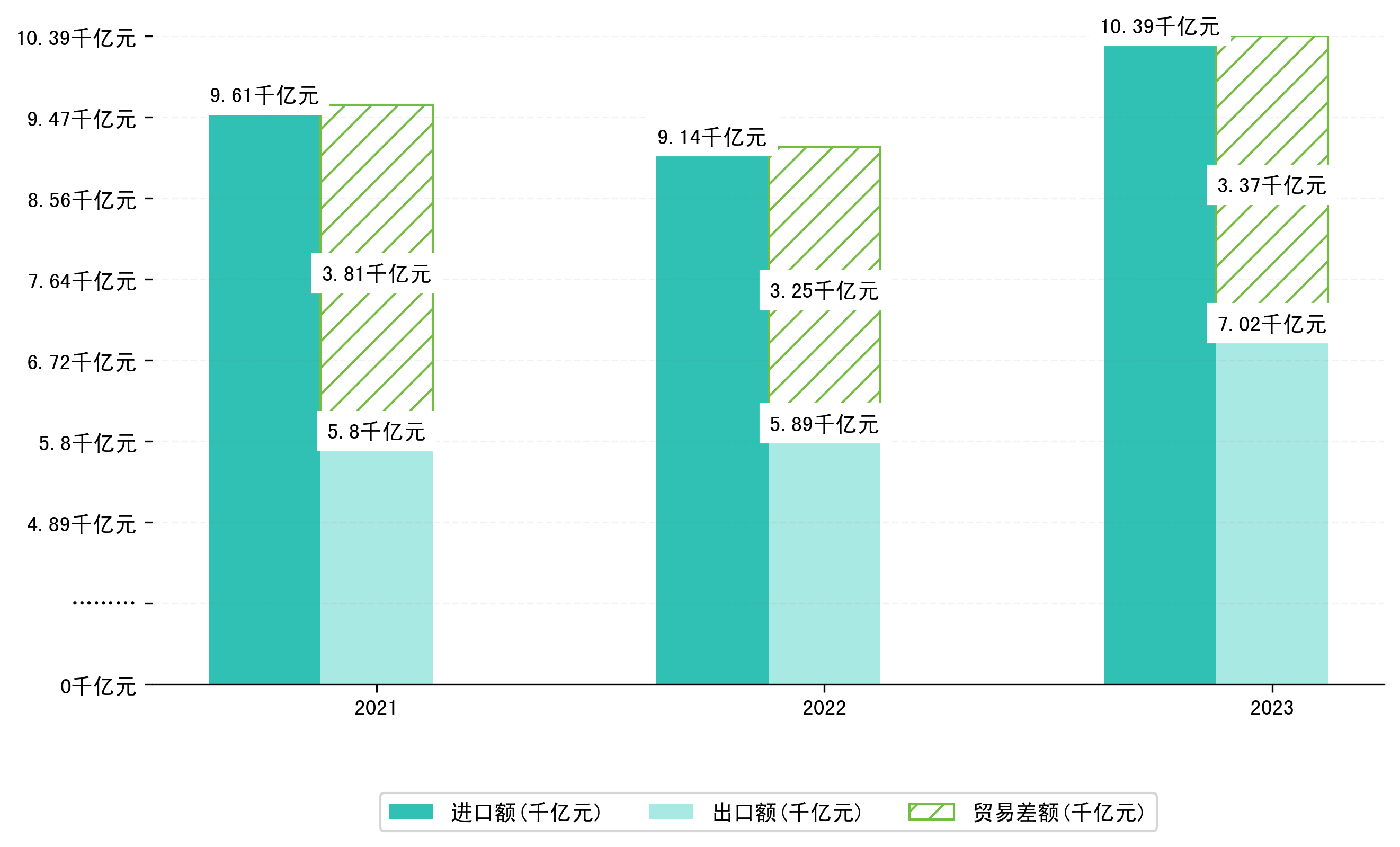 以人民币计,2023年5月上海市贸易差额为606,1578,1465万元(贸易逆差),相比上月减少了171,5360,7276万元,即24,6945,0066万美元;相比上年同期增加了31,3974,0032万元,同比增加-4.92%。