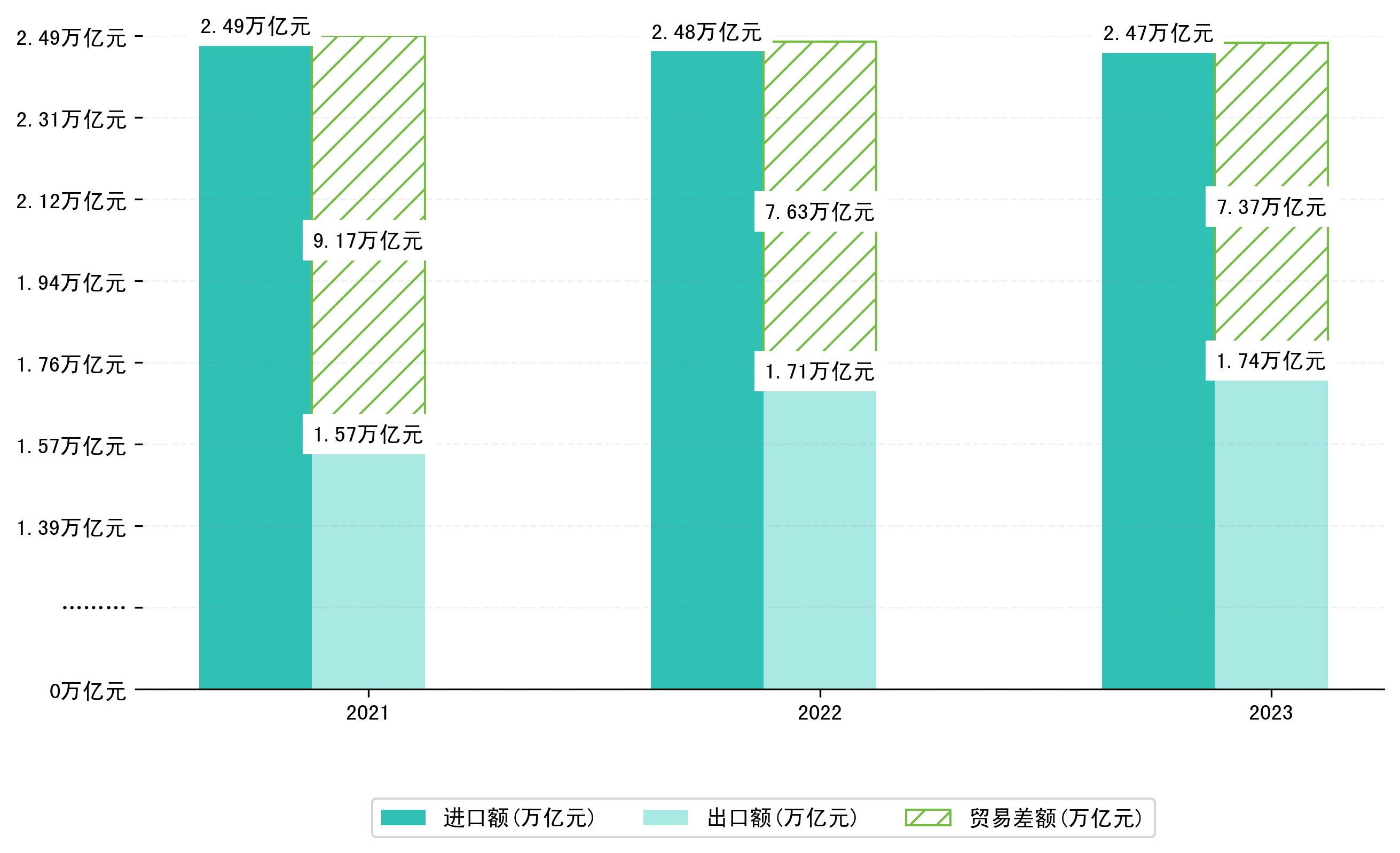 以人民币计,2023年12月上海市贸易差额为529,0671,5863万元(贸易逆差),相比上月增加了11,9917,2401万元,即1,0090,9412万美元;相比上年同期增加了138,0926,5749万元,同比增加-20.7%。