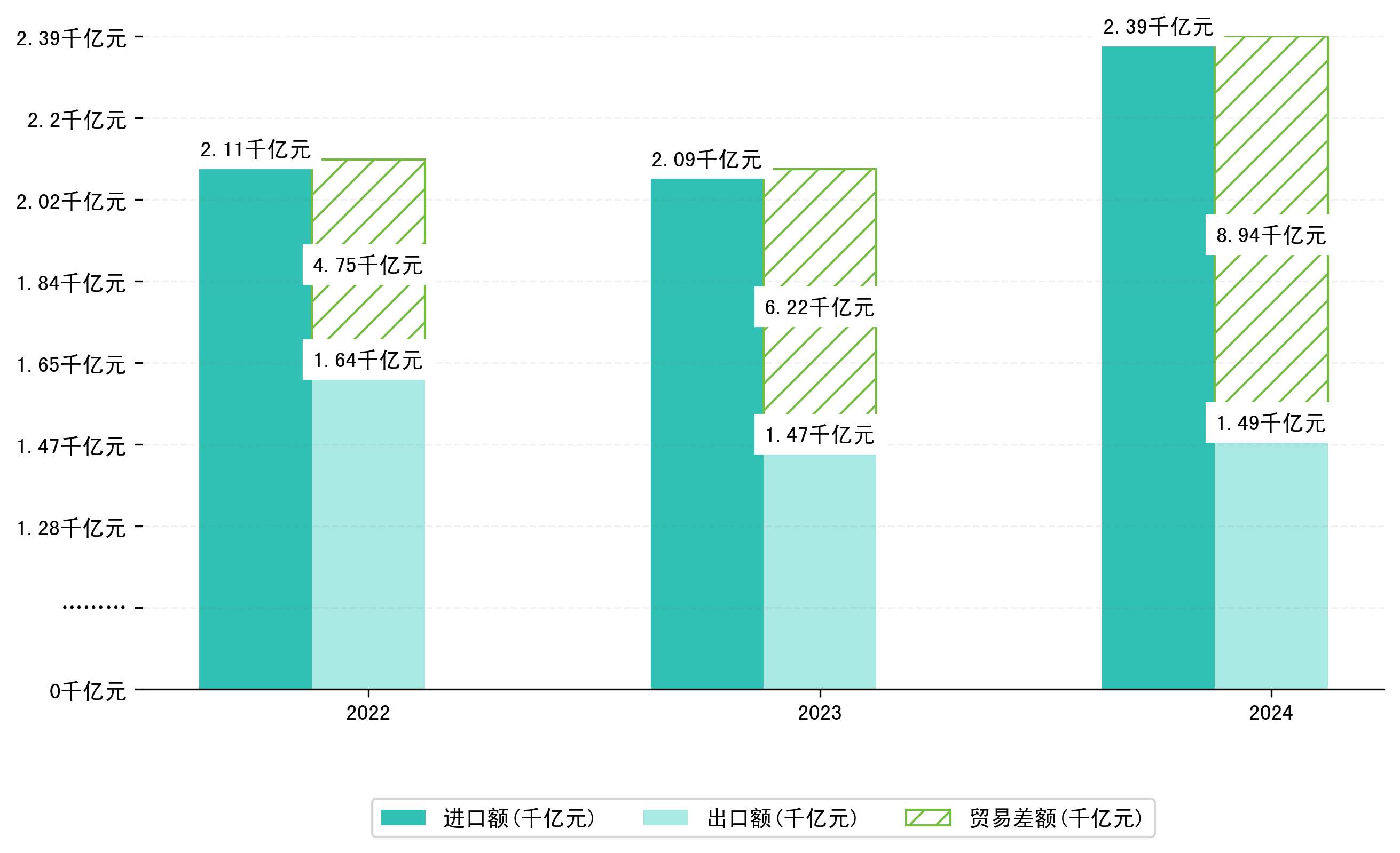 以人民币计,2024年1月上海市贸易差额为893,7525,5687万元(贸易逆差),相比上月减少了364,6853,9824万元,即51,9849,3926万美元;相比上年同期减少了271,9752,2901万元,同比减少43.74%。
