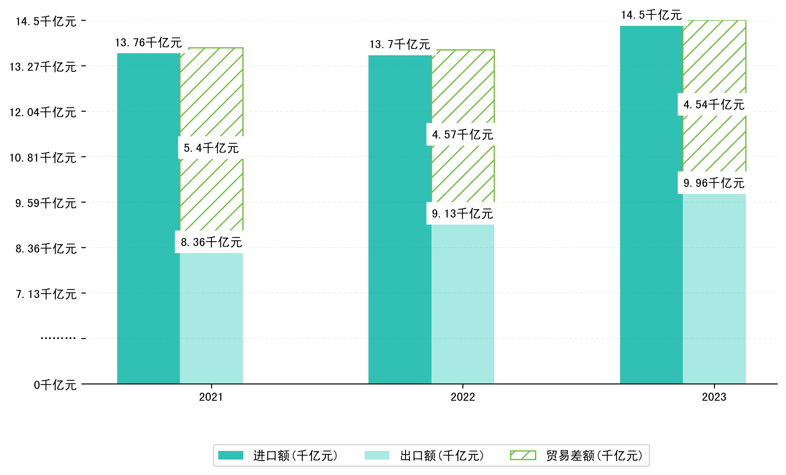 以人民币计,2023年1-7月上海市贸易差额为4542,1581,3546万元(贸易逆差),相比上年同期增加了31,4642,7957万元,同比增加-0.69%。