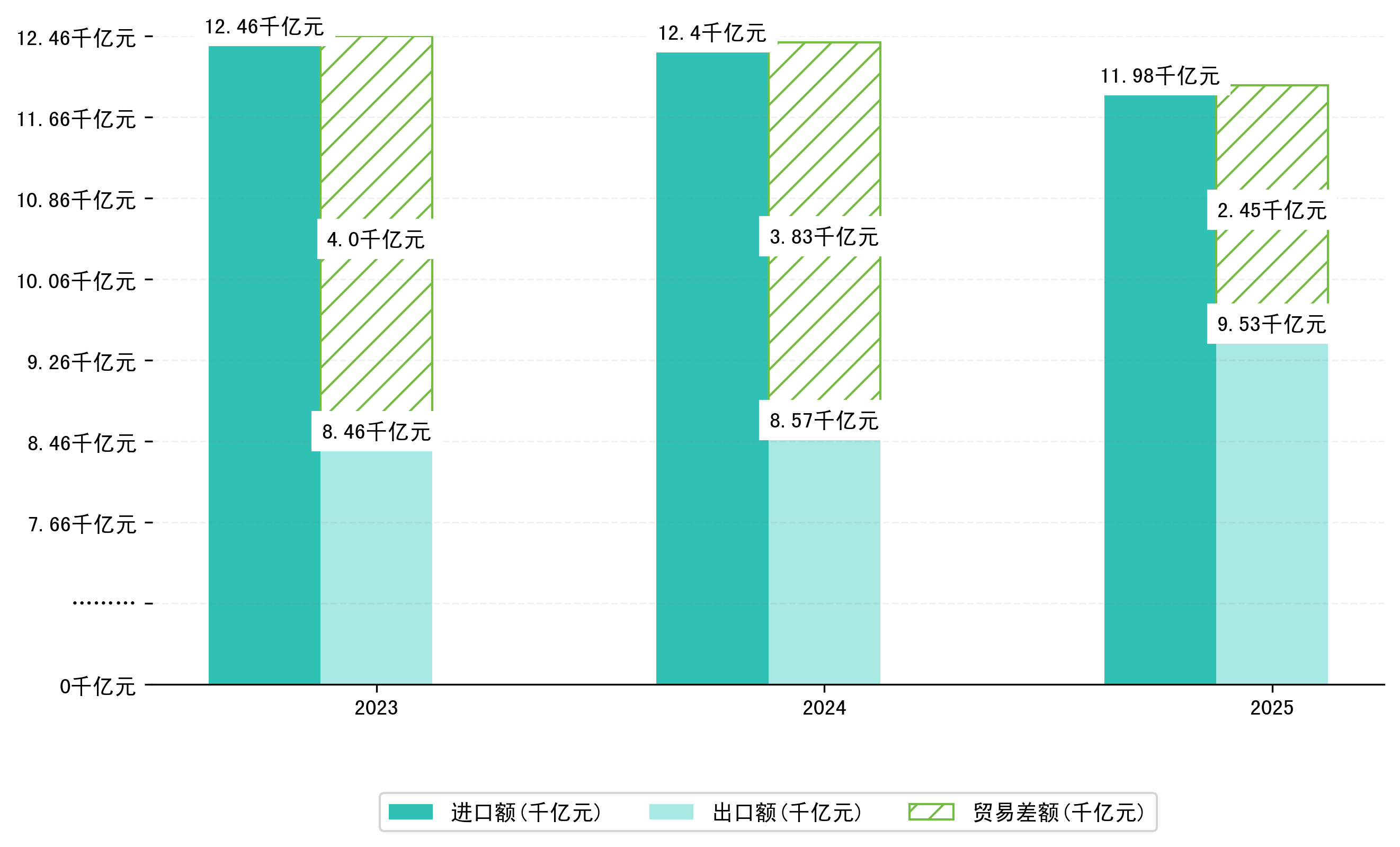 以美元计,2025年1-6月上海市贸易差额为341,3794,2055万美元(贸易逆差),相比上年同期增加了197,5812,9213万美元,同比增加-36.66%。