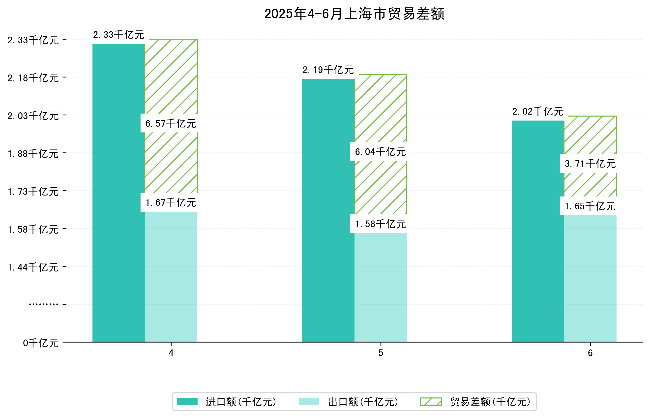 一、2025年6月上海市单月出口总额及进出口差额统计分析