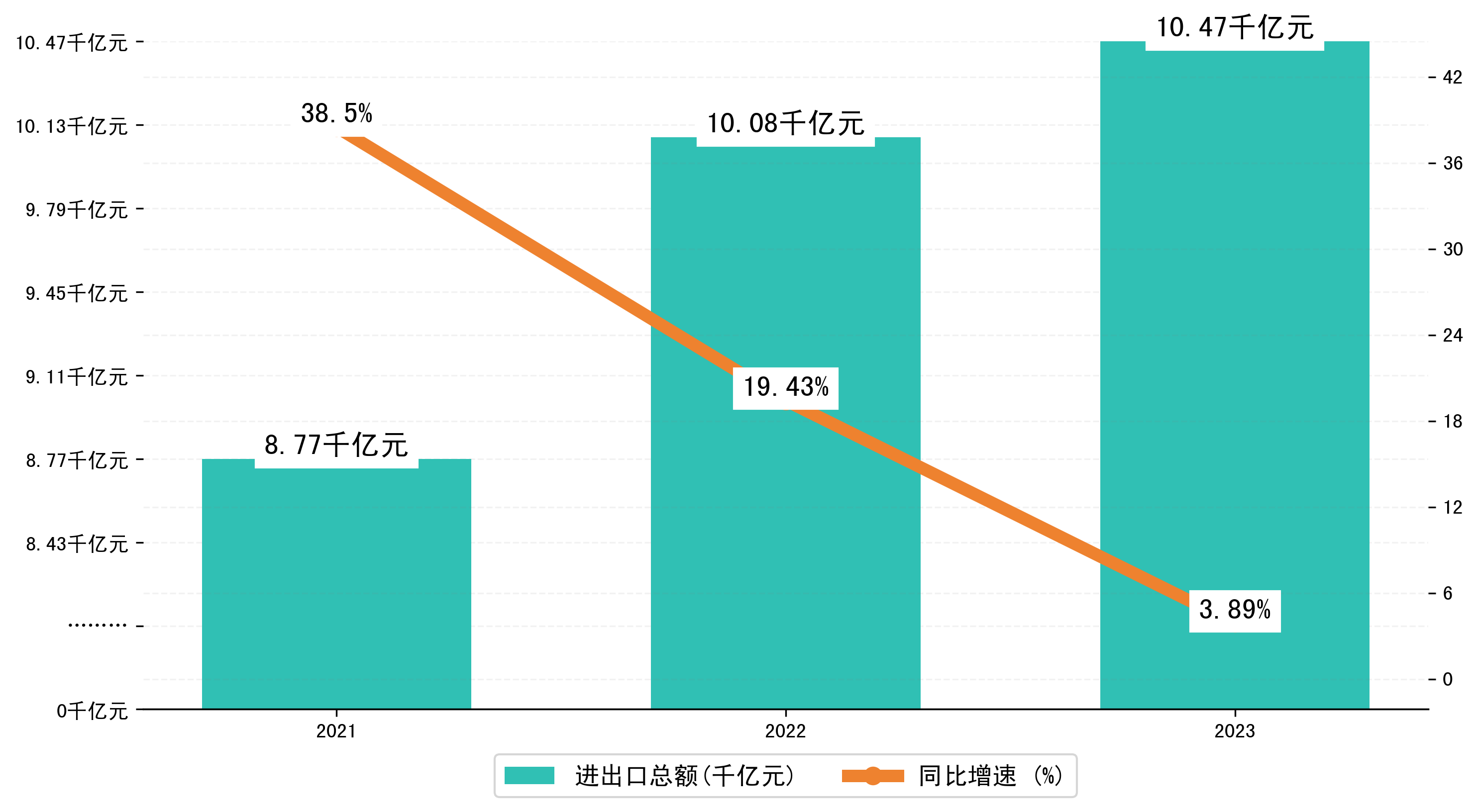 以人民币计,2023年1-3月上海市进出口总额为1,0470,9141.809万元,相比上年同期增加了391,7740.5291万元,同比增加了3.50%。