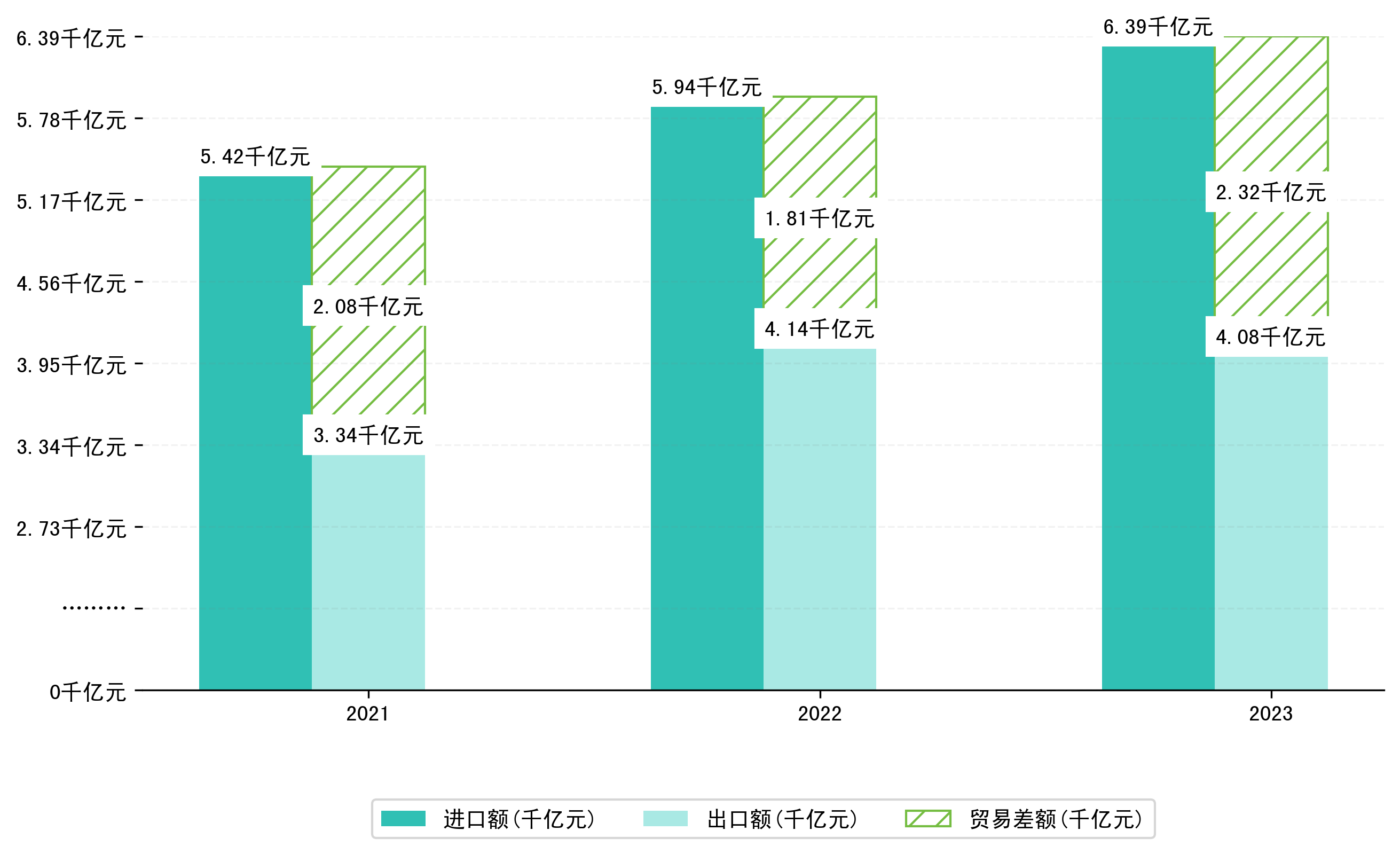 以人民币计,2023年3月上海市贸易差额为810,7993,5145万元(贸易逆差),相比上月增加了71,6671,6210万元,即11,9717,4293万美元;相比上年同期减少了157,2220,6928万元,同比减少24.06%。
