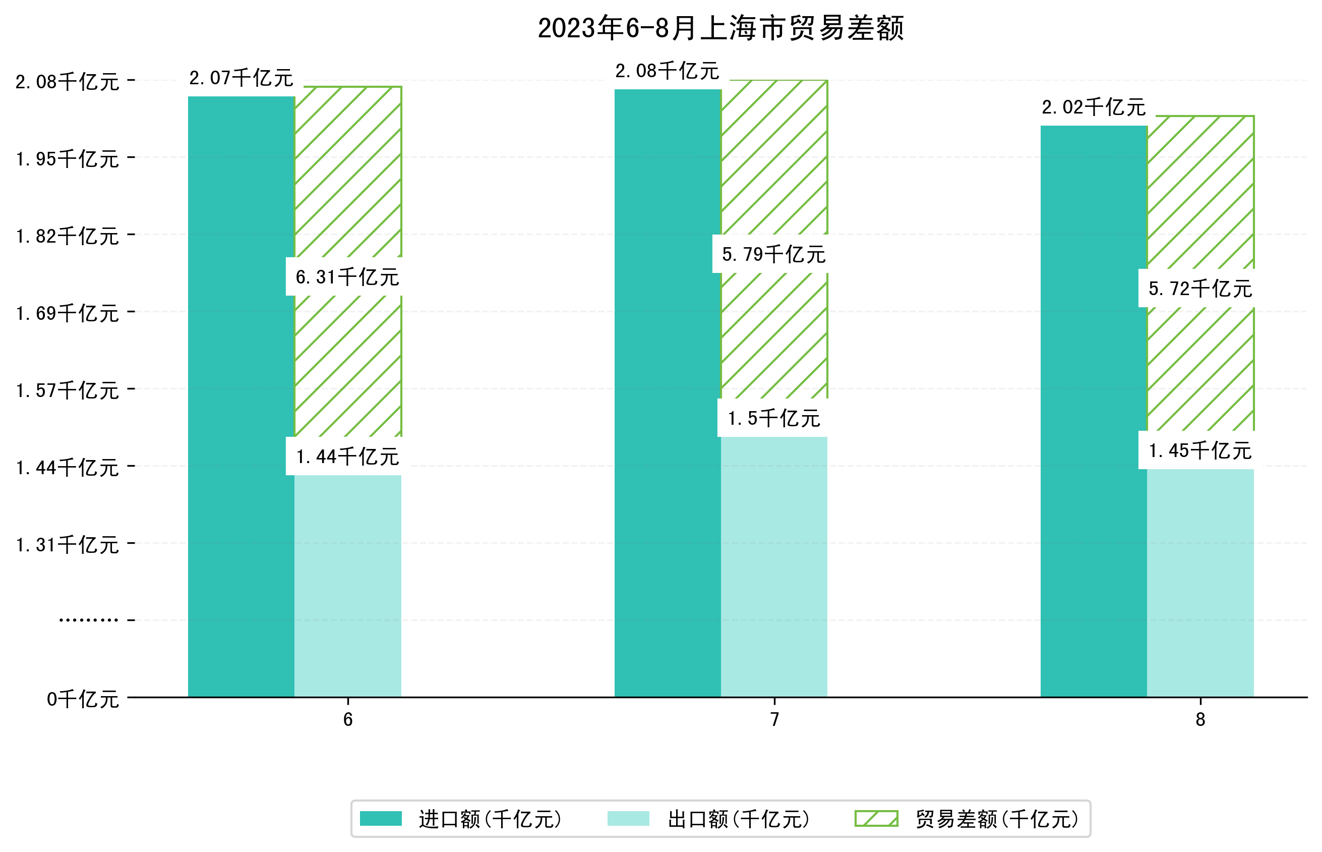 (图一:2023年6-8月上海市进出口总额)