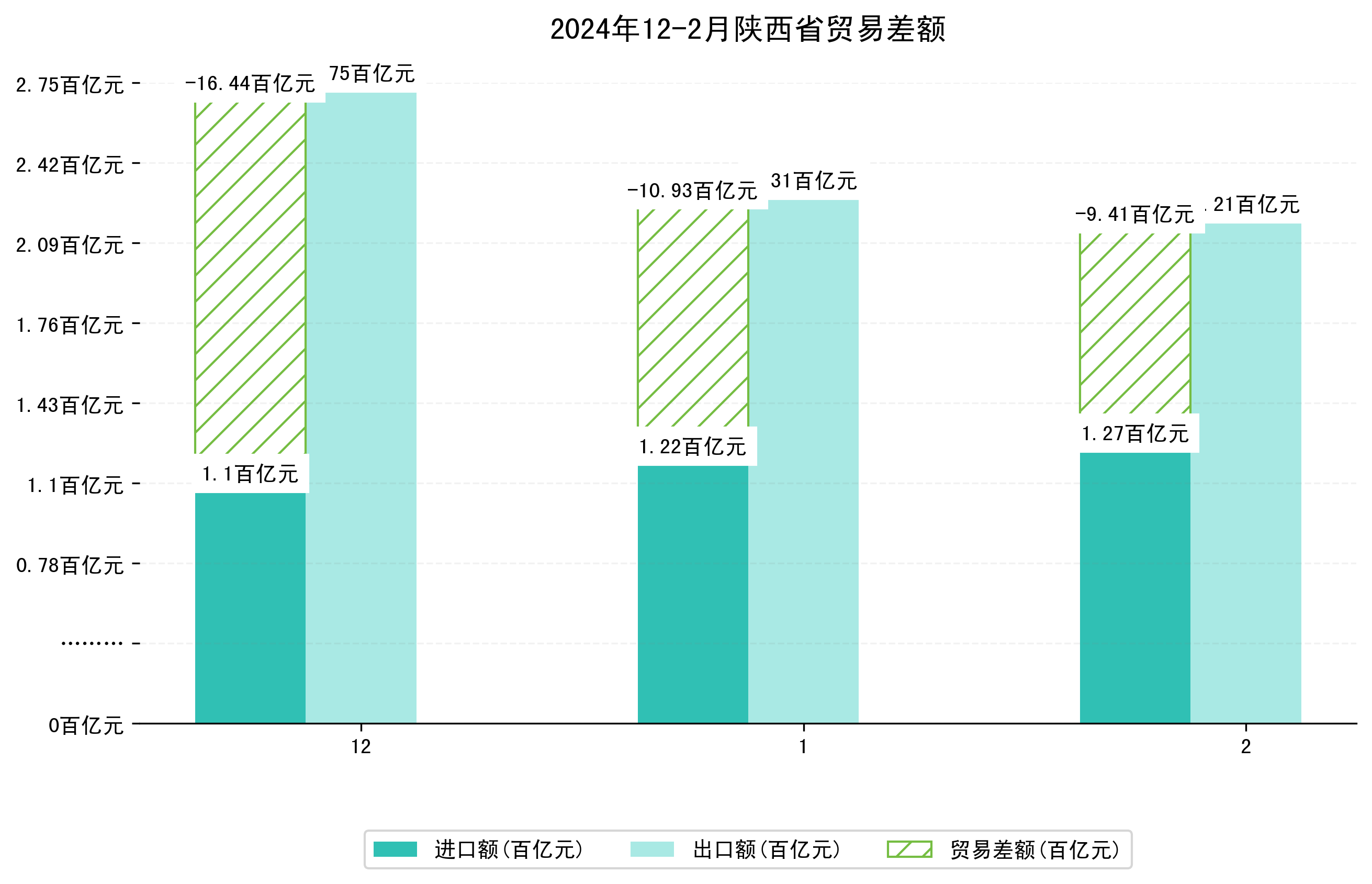 (图一:2024年12-2月陕西省进出口总额)