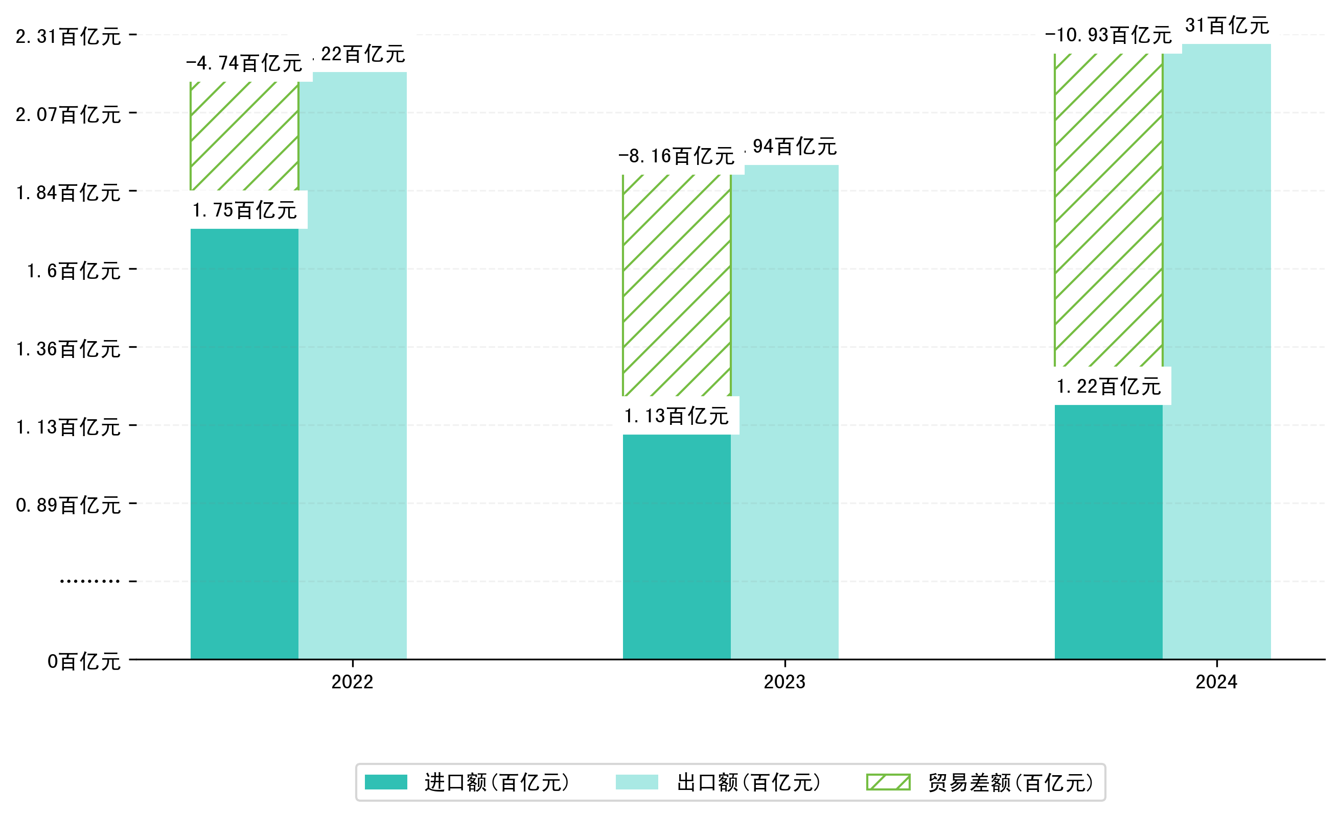 以人民币计,2024年1月陕西省贸易差额为109,2879,9654万元(贸易顺差),相比上月减少了55,1552,6541万元,即7,5630,7644万美元;相比上年同期增加了27,6758,6888万元,同比增加33.91%。