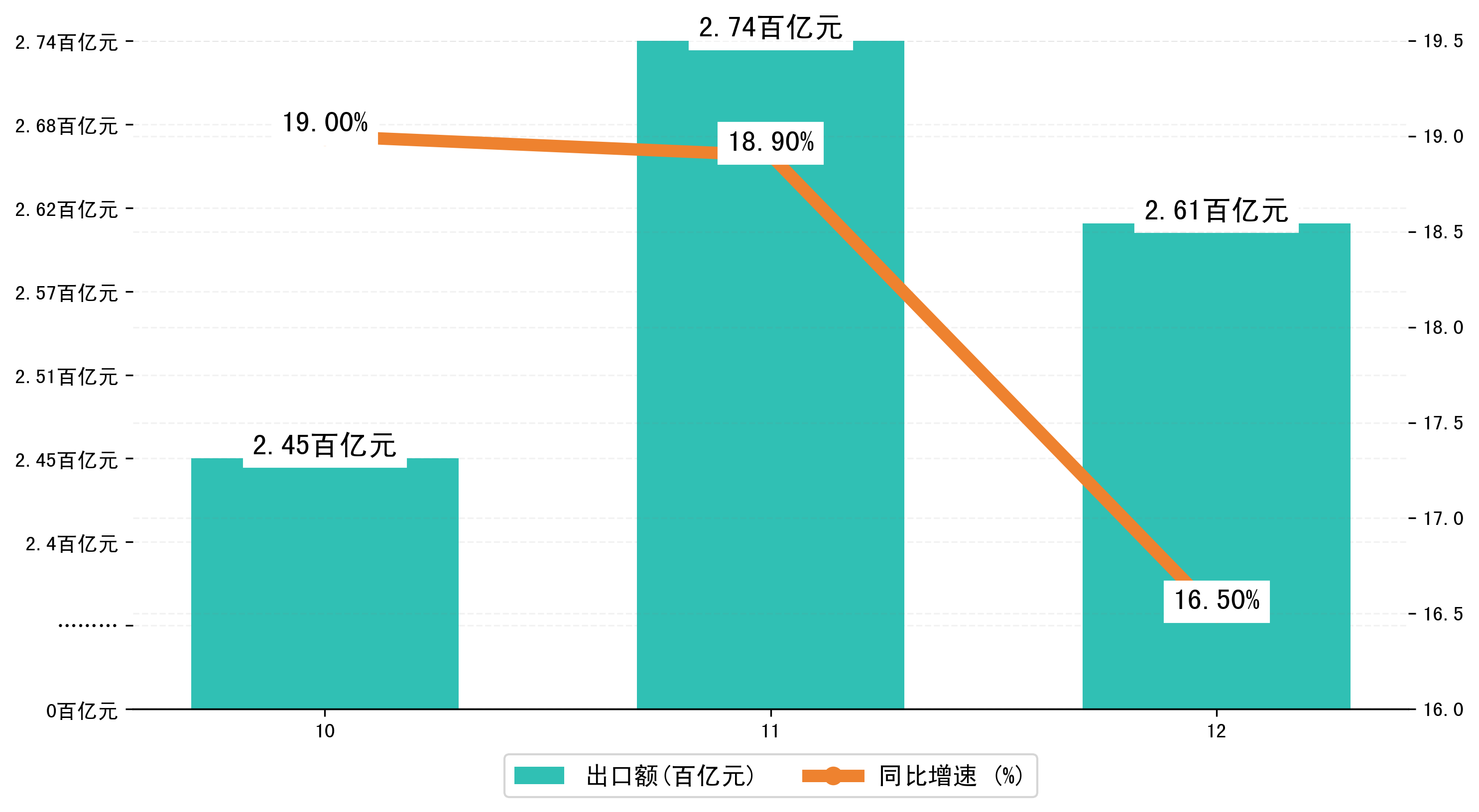 一、2024年12月陕西省单月出口总额及进出口差额统计分析
