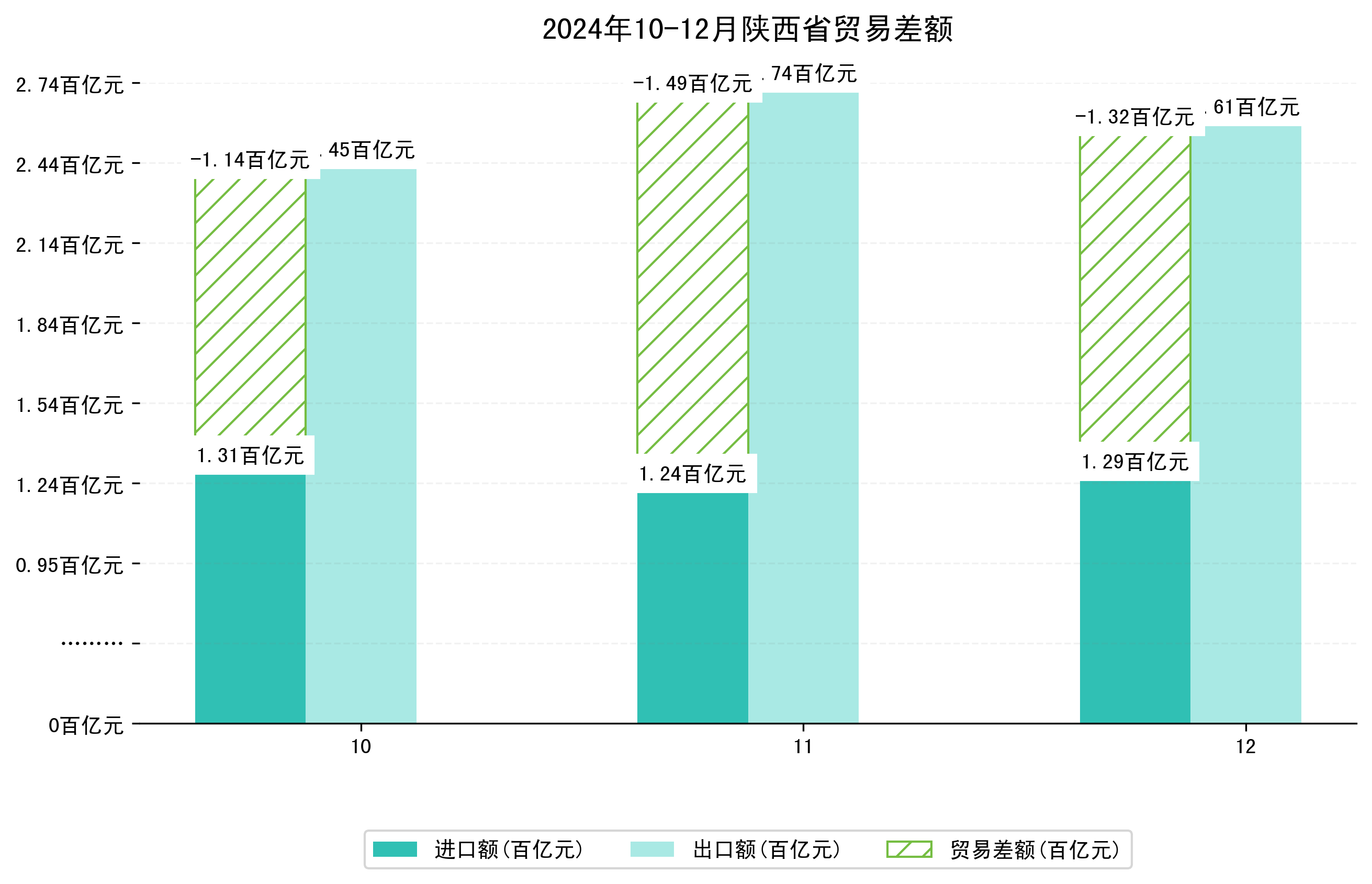 2024年12月陕西省进出口总额及进出口差额统计分析
