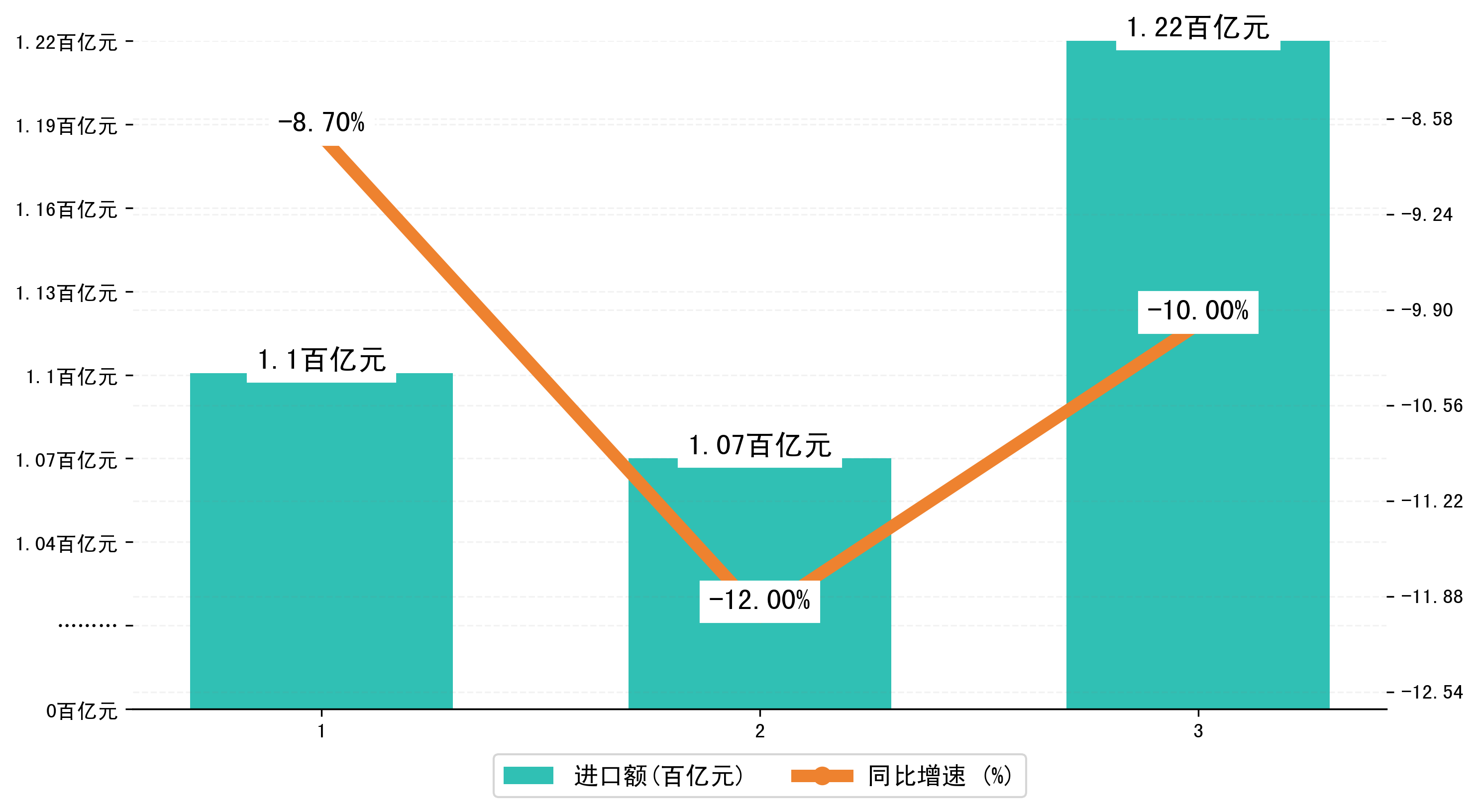 以人民币计,2025年1-3月陕西省进口额为339,2666.1691万元,相比上年同期减少了39,2017.7536万元,同比减少了-10.00%。